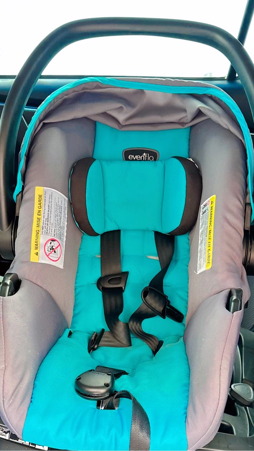 Purchased in June 2024. Seldom used infant car seat in teal and grey. In good condition and includes the base. Ready for your little one.