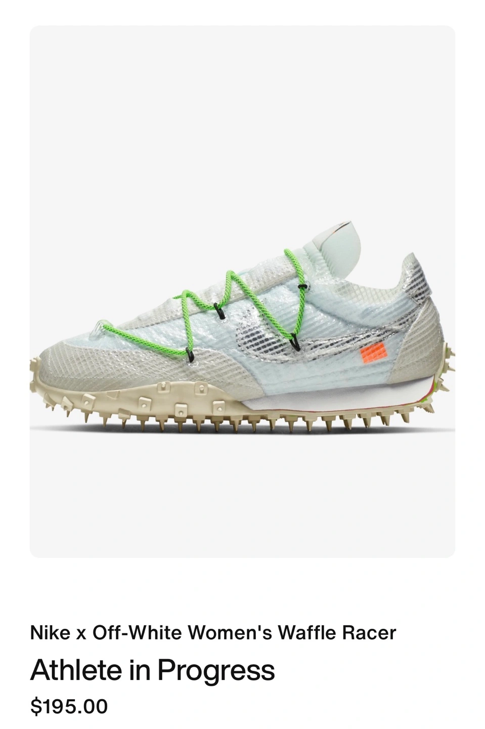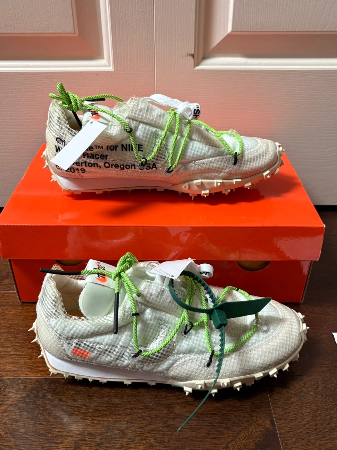 Women's Nike x Off-White Waffle Racer sneakers. Off-white colourway. Unique design features. New with box.