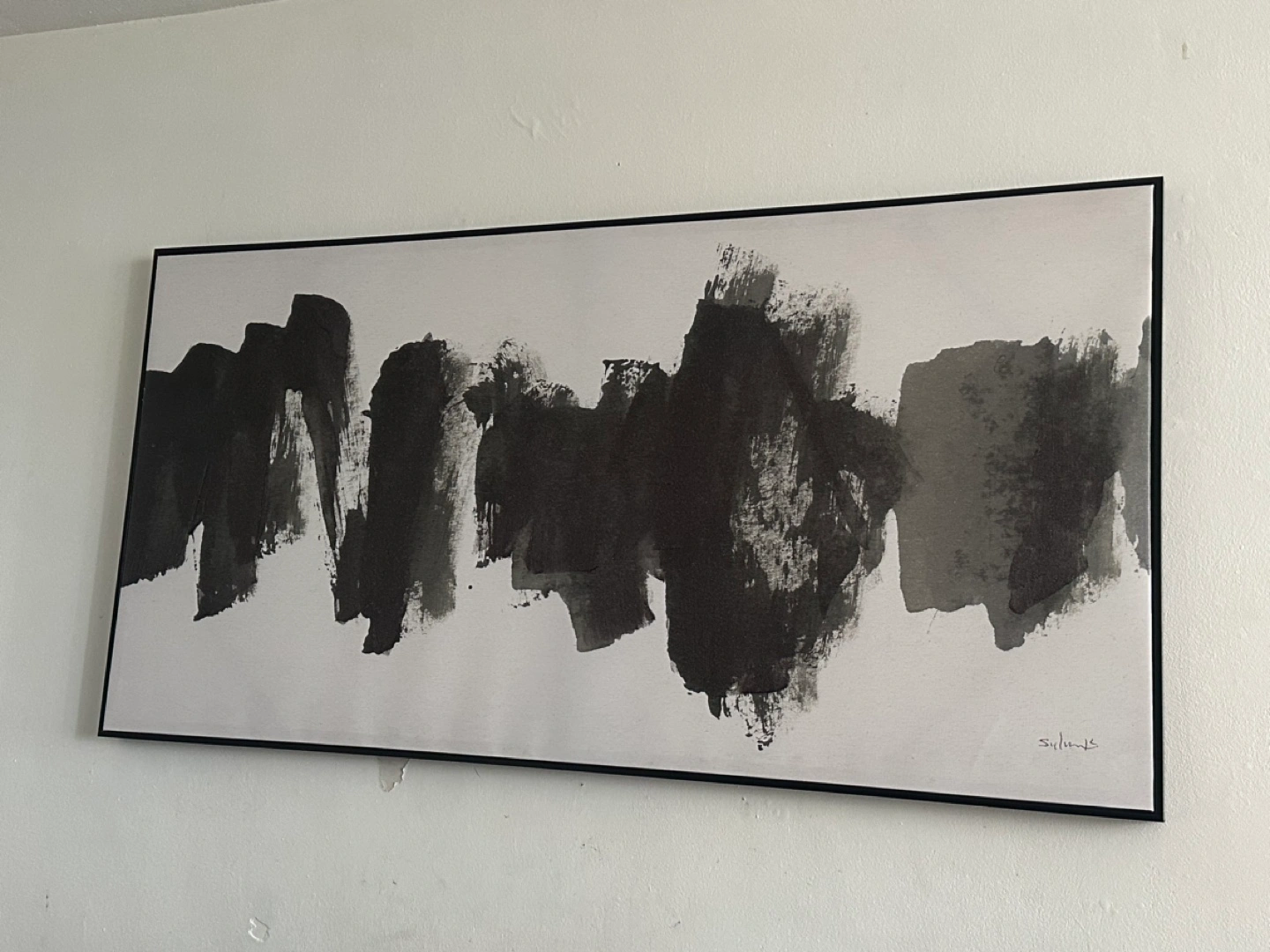 Modern abstract painting. Black brushstrokes on off-white canvas. Framed. Great statement piece for your home.