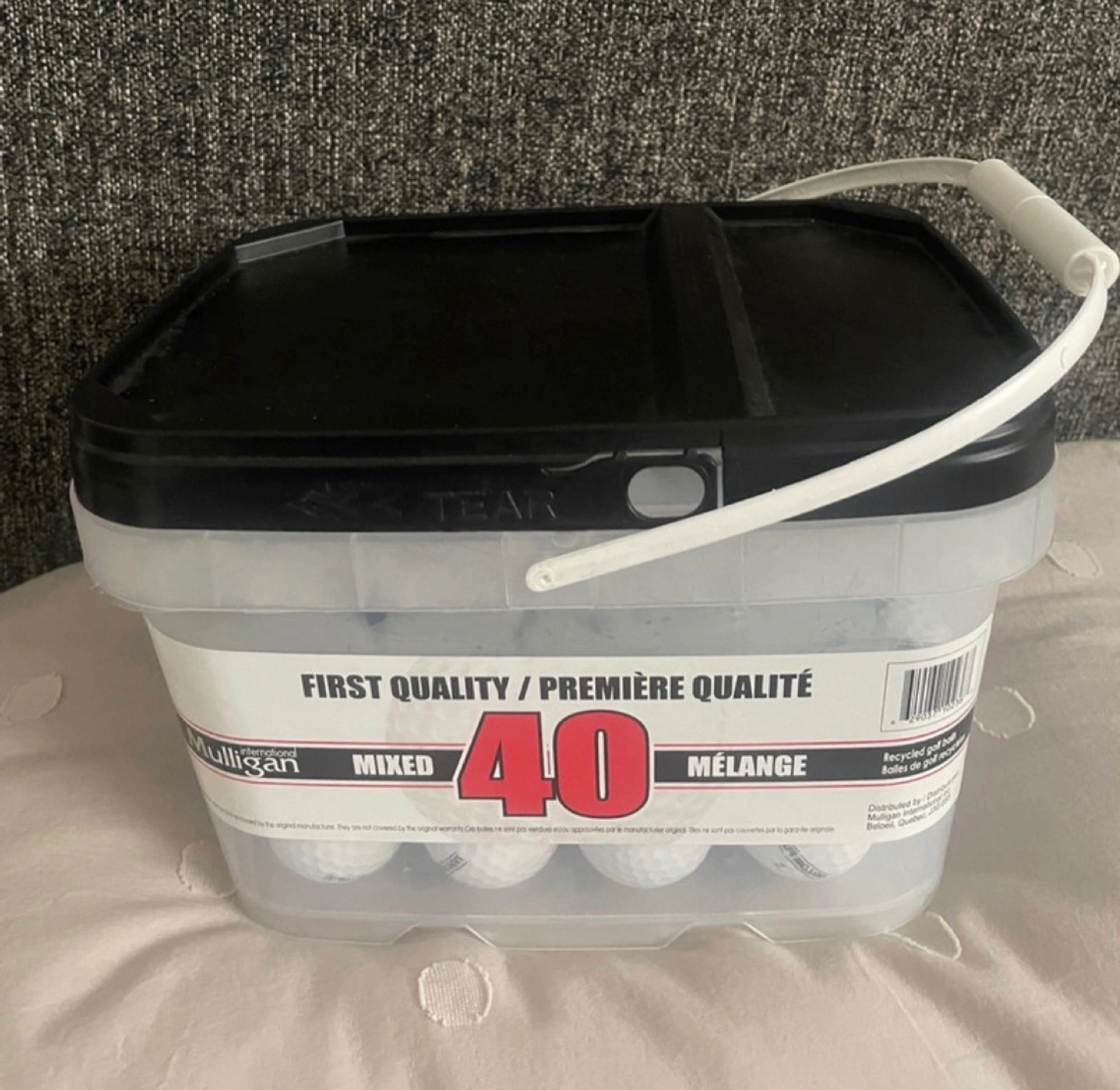 28Brand new Bucket of Mulligan 40pk mixed used golf balls. First quality.