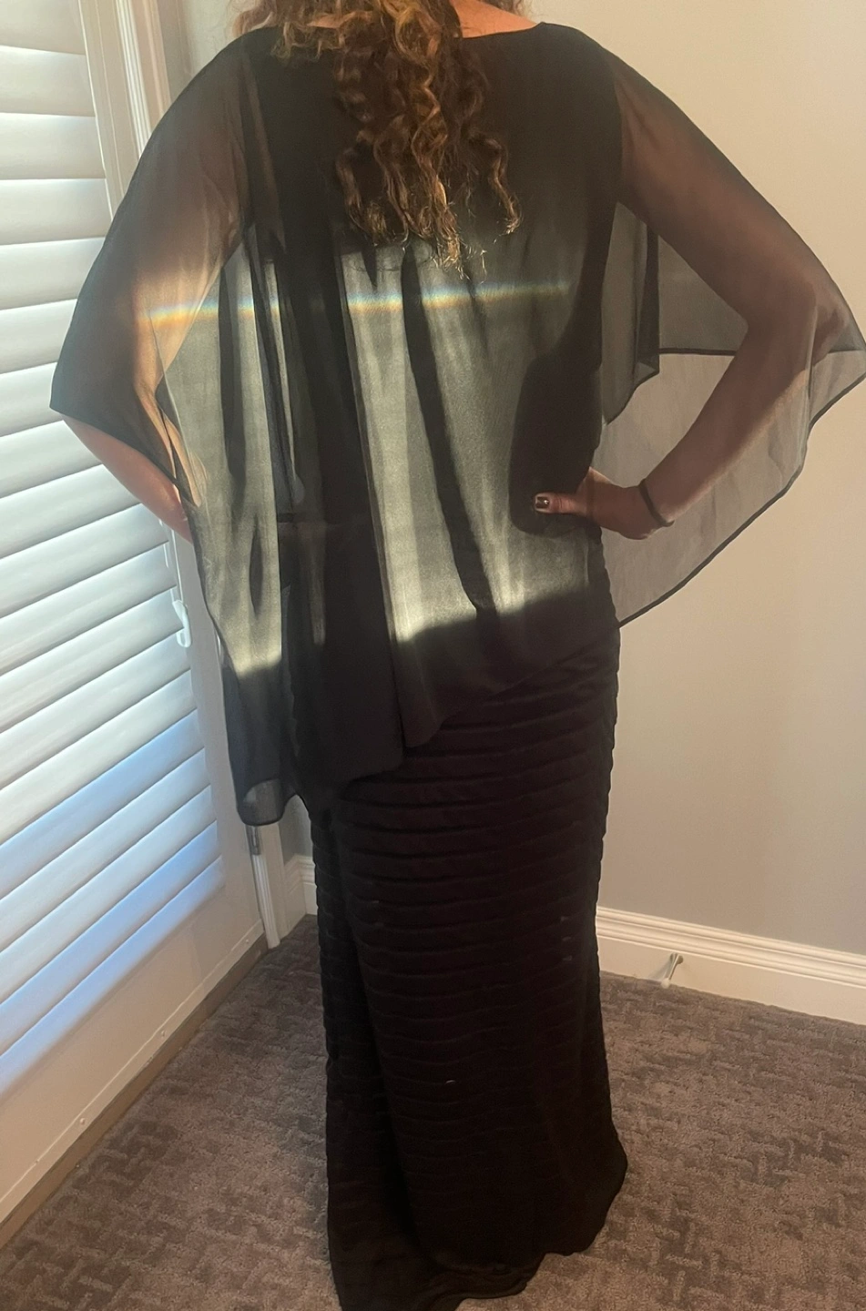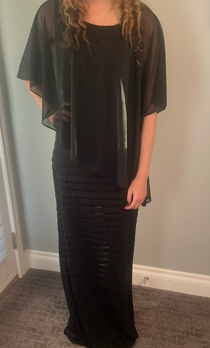 28New Adrianna Papell Stunning black dress. Features a sheer overlay and a pleated skirt. Perfect for a special occasion.