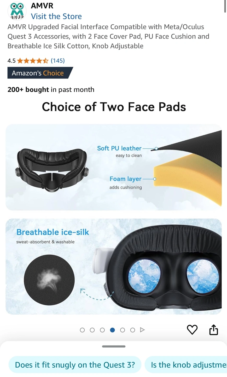 Two Types of Face Pads: PU Leather Pad and Ice Silk Cotton. The PU leather face pad is soft and easy to clean, perfect for sharing with friends. The Ice Silk cushion feels cold and breathable, perfect for using in more intense VR programs, such as: beat saber, boxing, shooting, etc