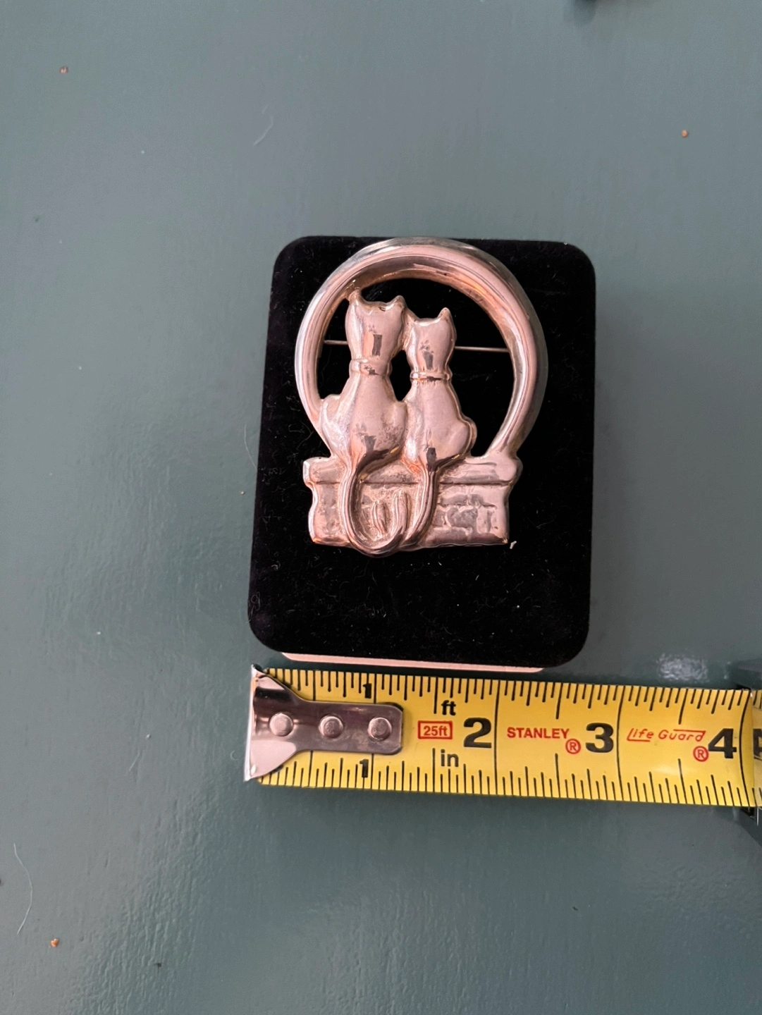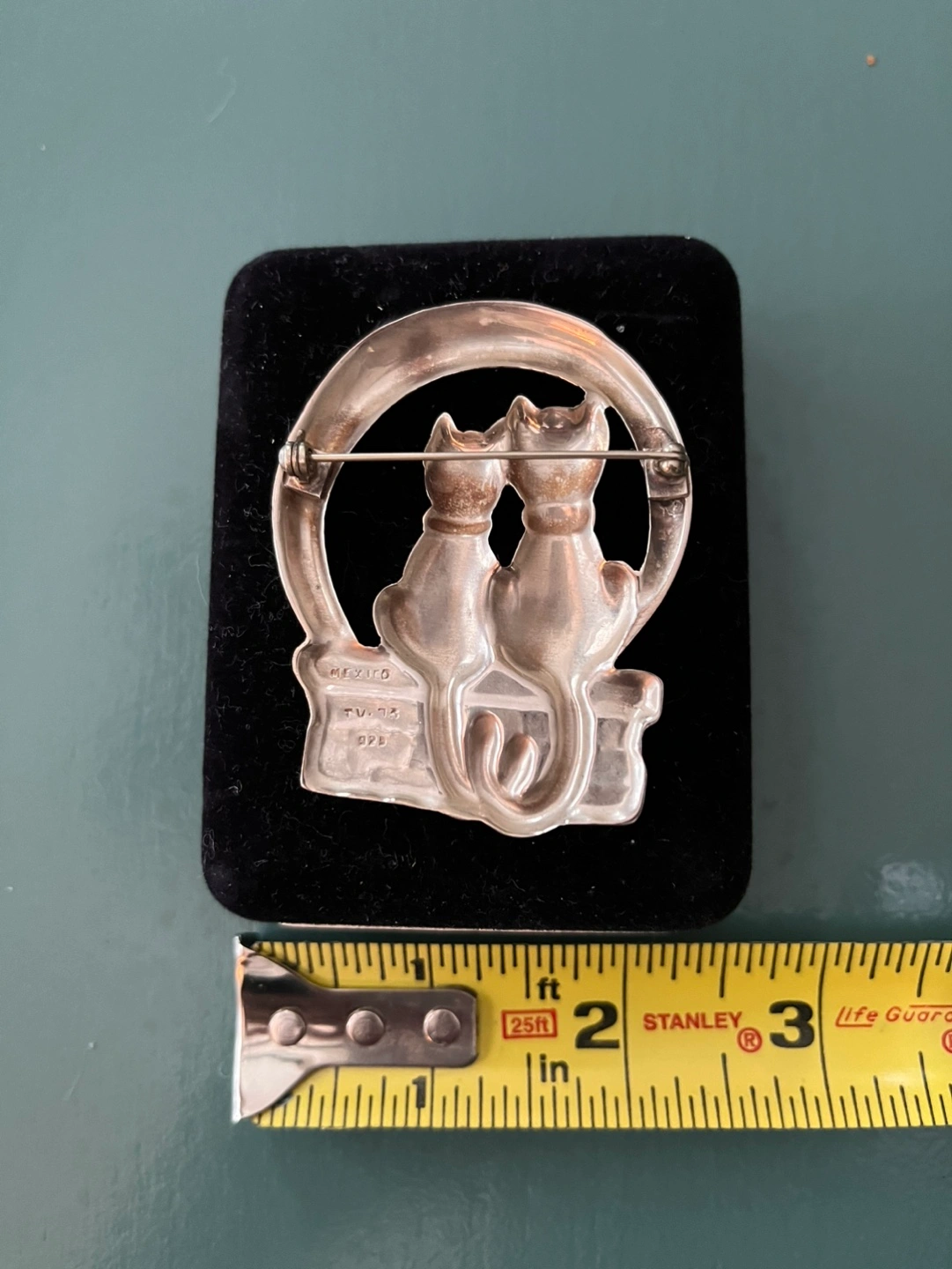 Adorable vintage brooch. Two cats sitting under the moon. Sterling silver. Measures approximately 1.75 inches.
