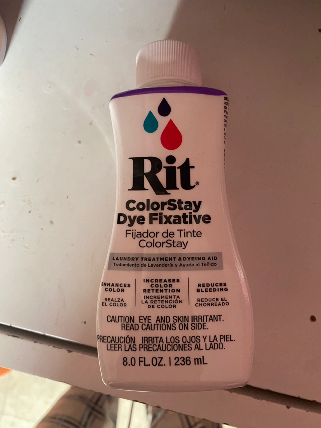 Rit ColorStay Dye Fixative. Laundry treatment. Increases color retention, reduces bleeding. Enhances color.
