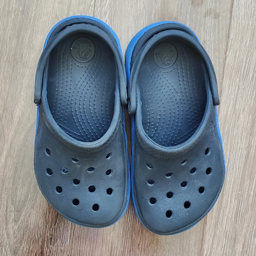 Crocs kids clogs. Size 10/11. Dark grey and blue.