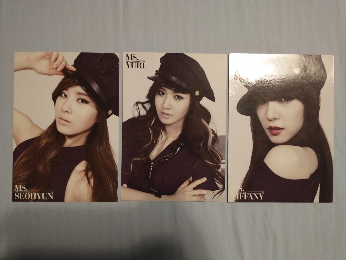 Three k-pop band Girl's Generation photo cards of Tiffany, Yuri, and Seohyun