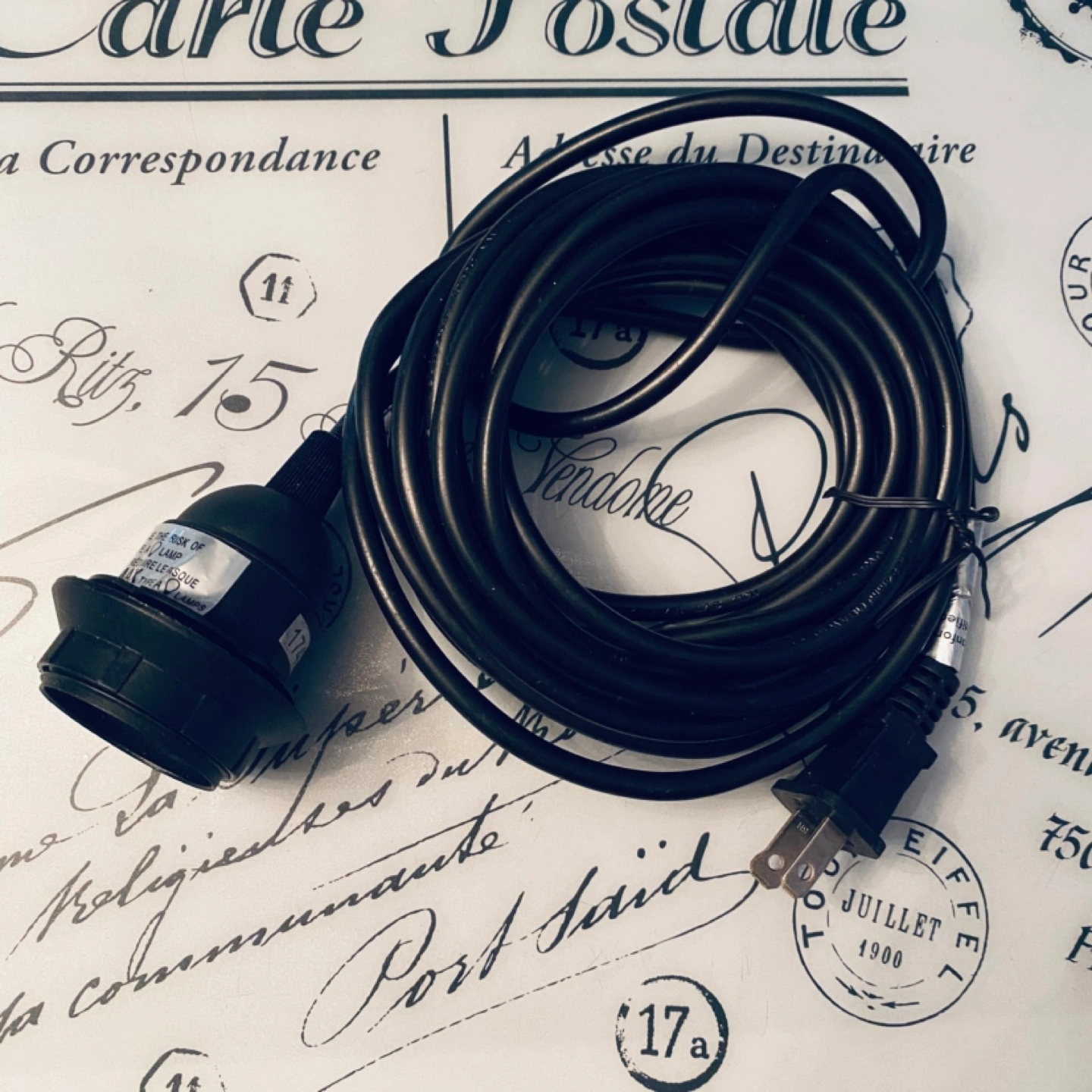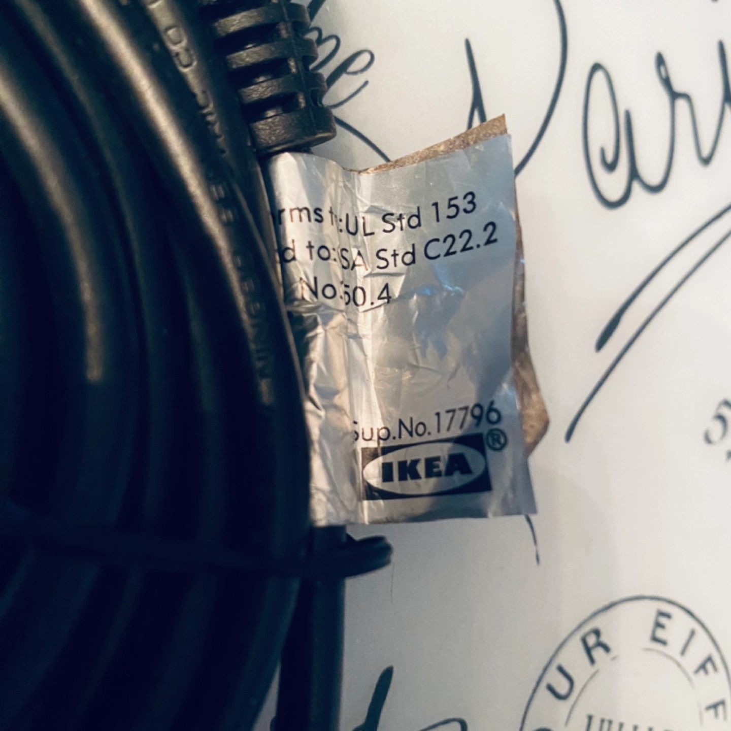 Black hanging lamp cord, from IKEA, name is Hemma. In great clean condition. Don’t think I even used this one. Bought for $10+tax.