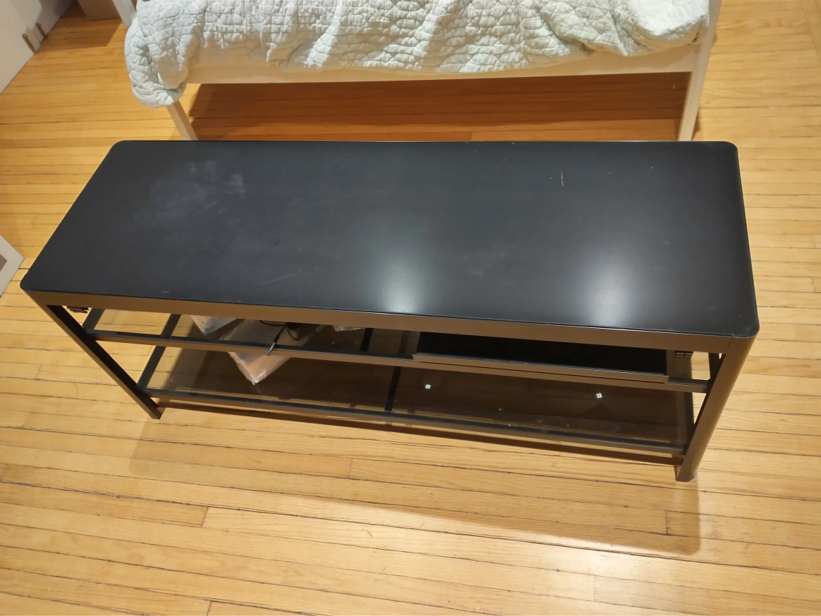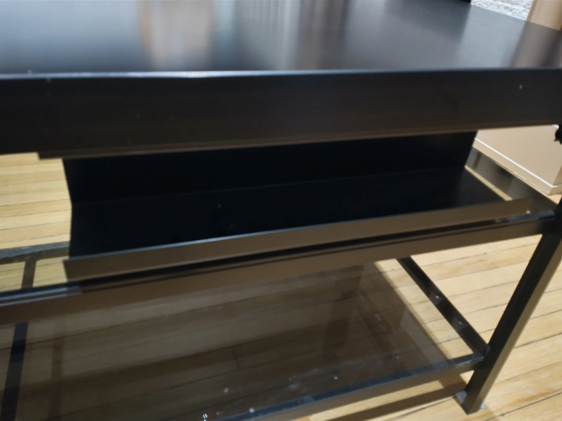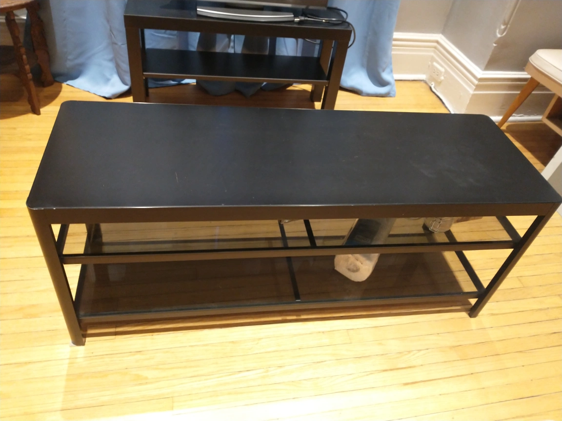 Black metal and glass long tv table