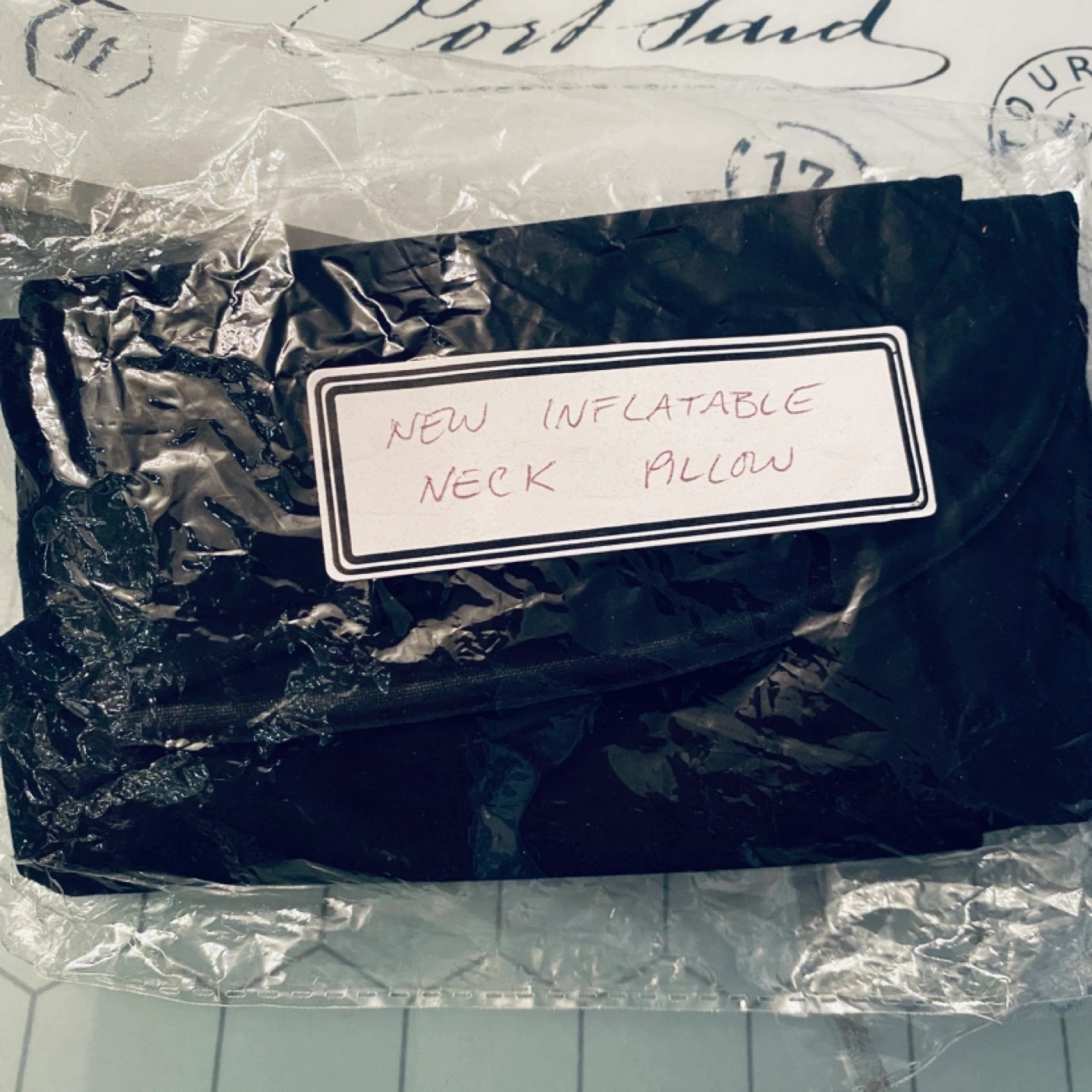 1. Black suede-like inflatable neck pillow