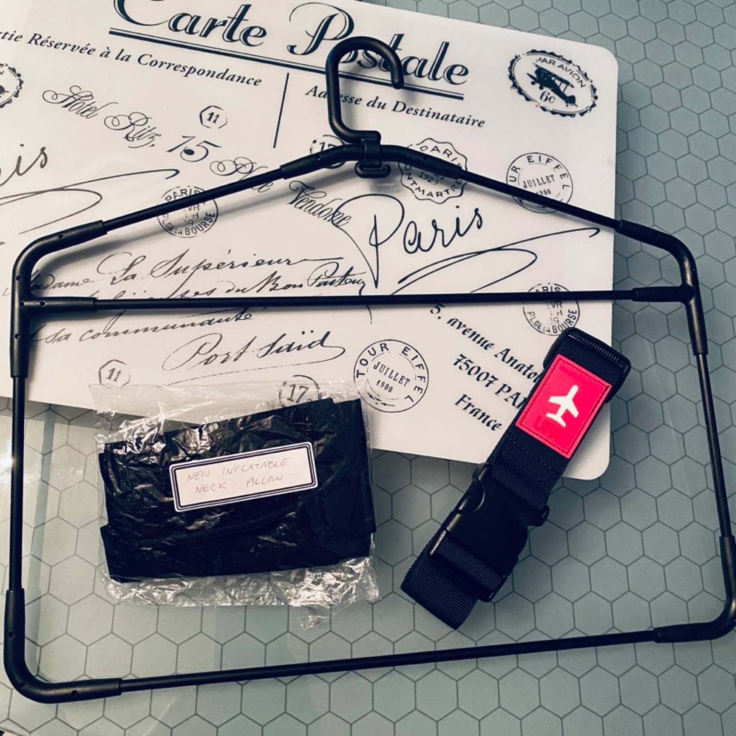 3. Black travel hanger, perfectly fits in carry-on luggage, strong metal & plastic, can hold multiple pieces of clothing