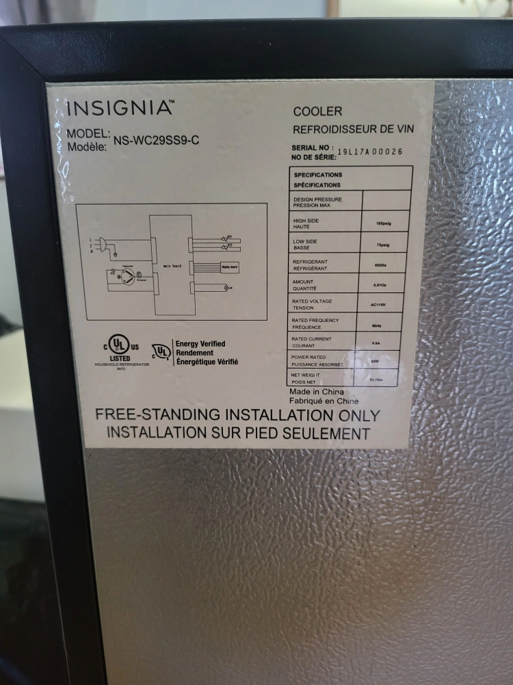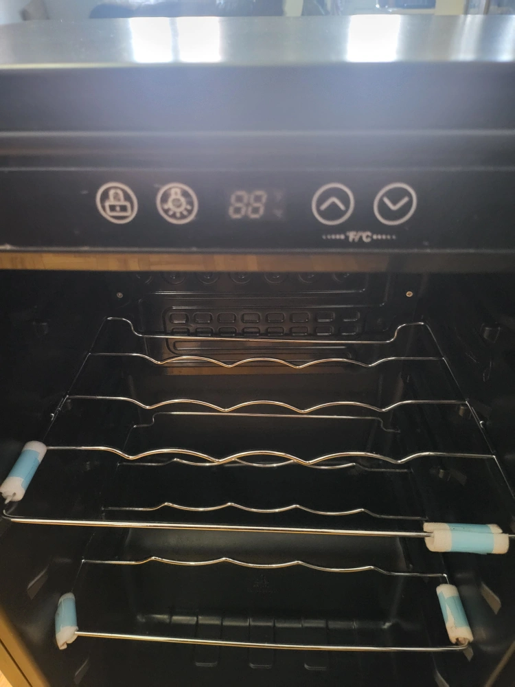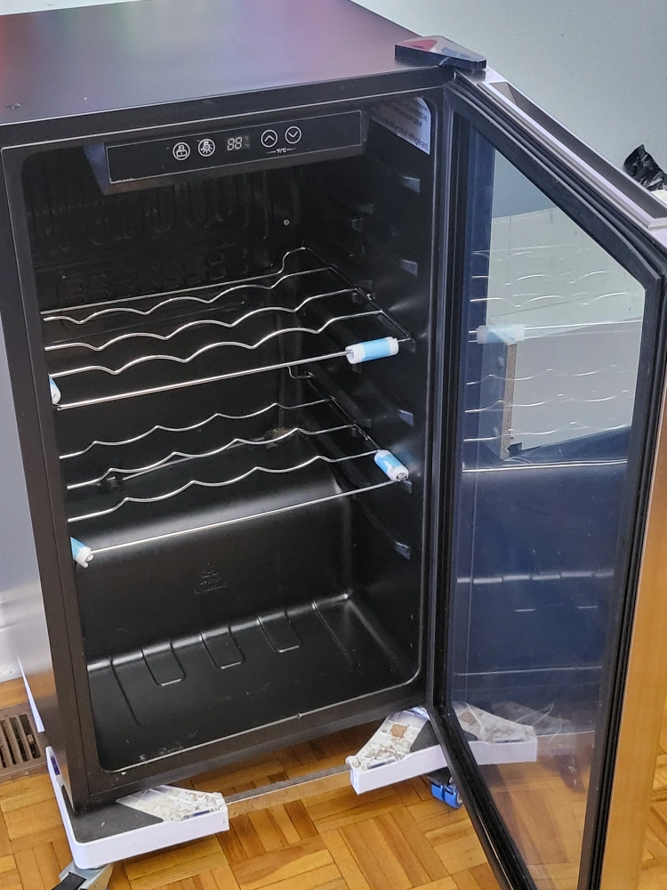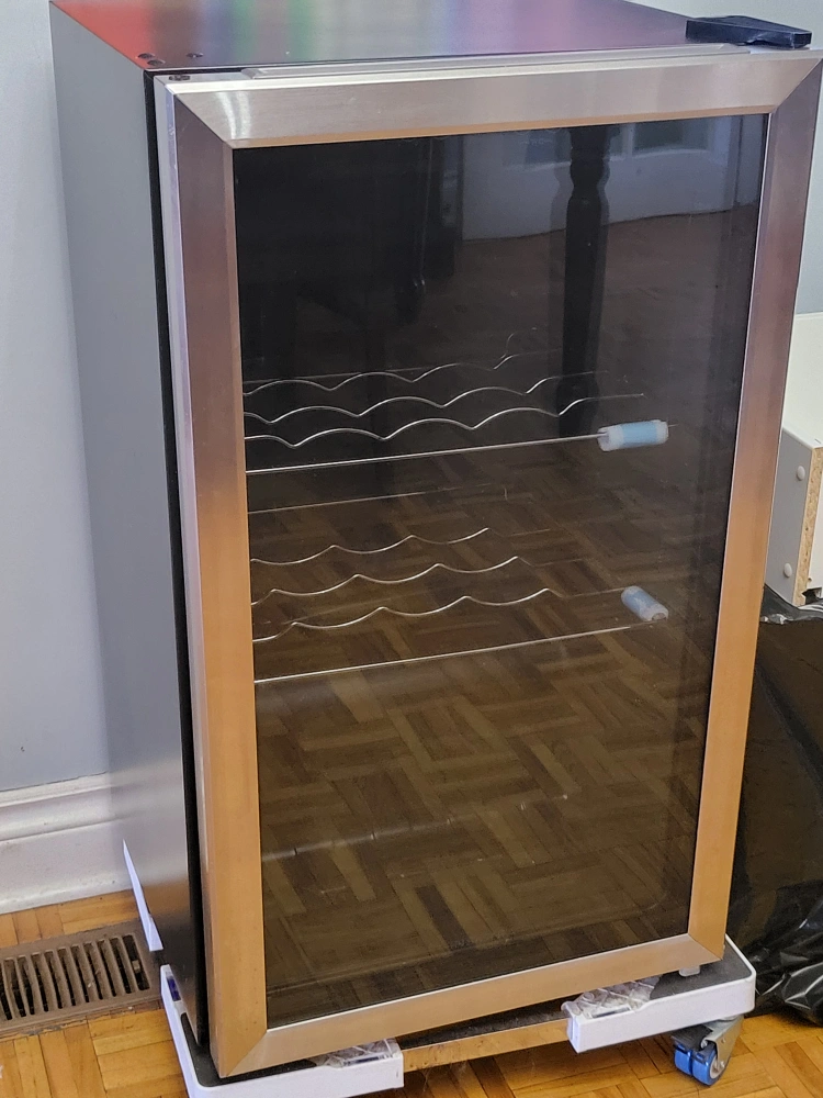 Stainless steel wine cooler. Holds up to 18 bottles. Digital temperature controls. Free-standing installation only. Good working condition.