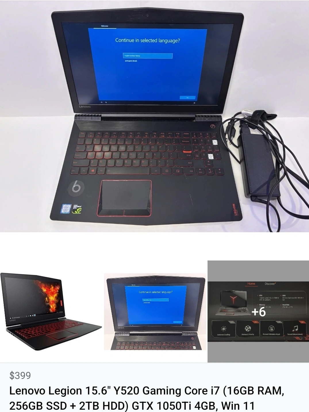 Lenovo Legion 15.6" Y520-15IKBN Core i7-7700HQ (16GB RAM, 256GB SSD + 2TB HDD) NVIDIA GTX 1050Ti 4GB, Windows 11
