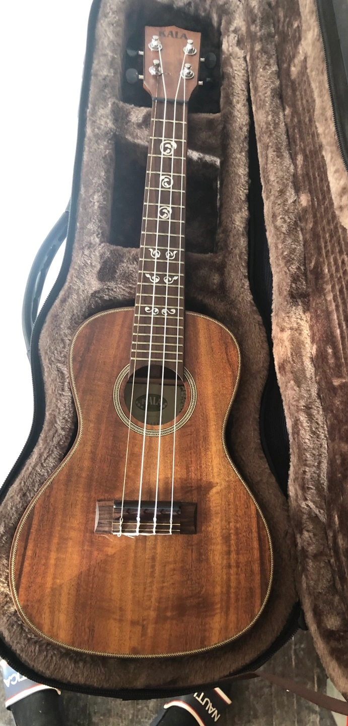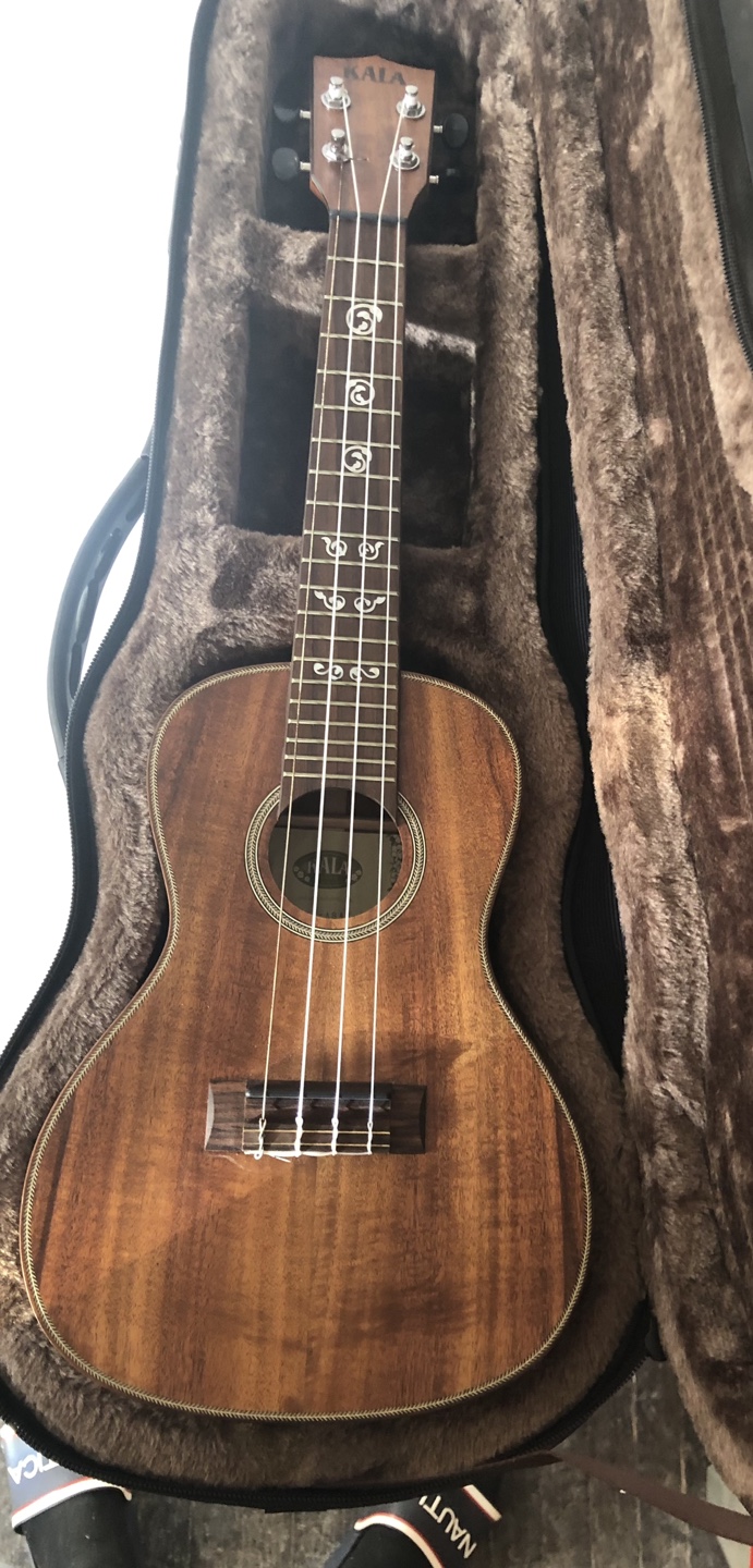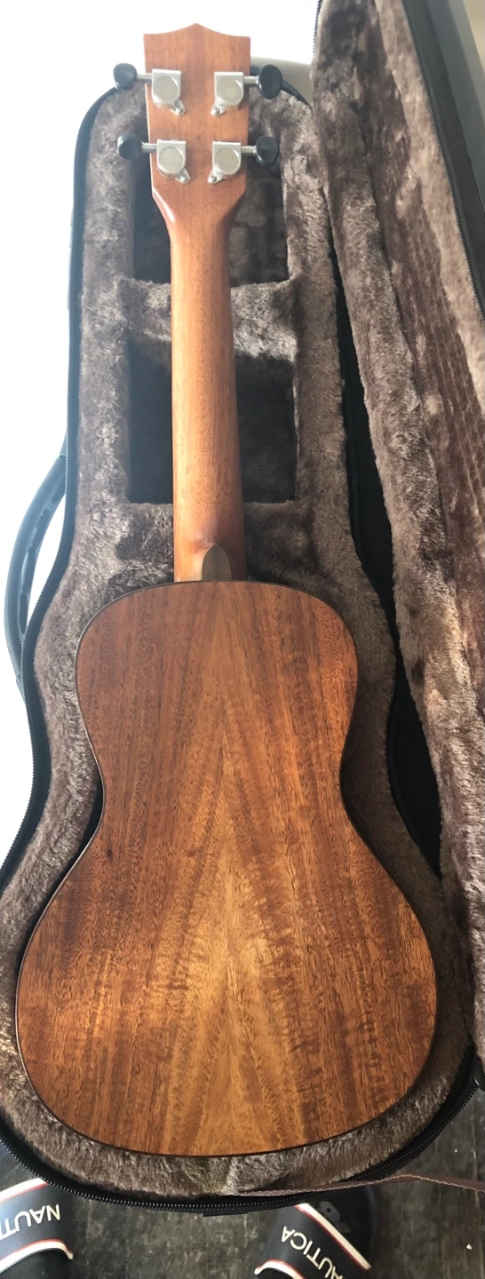 Concert ukulele. Beautiful wood grain. Includes hard case. Excellent condition. Almost new. Barely played.