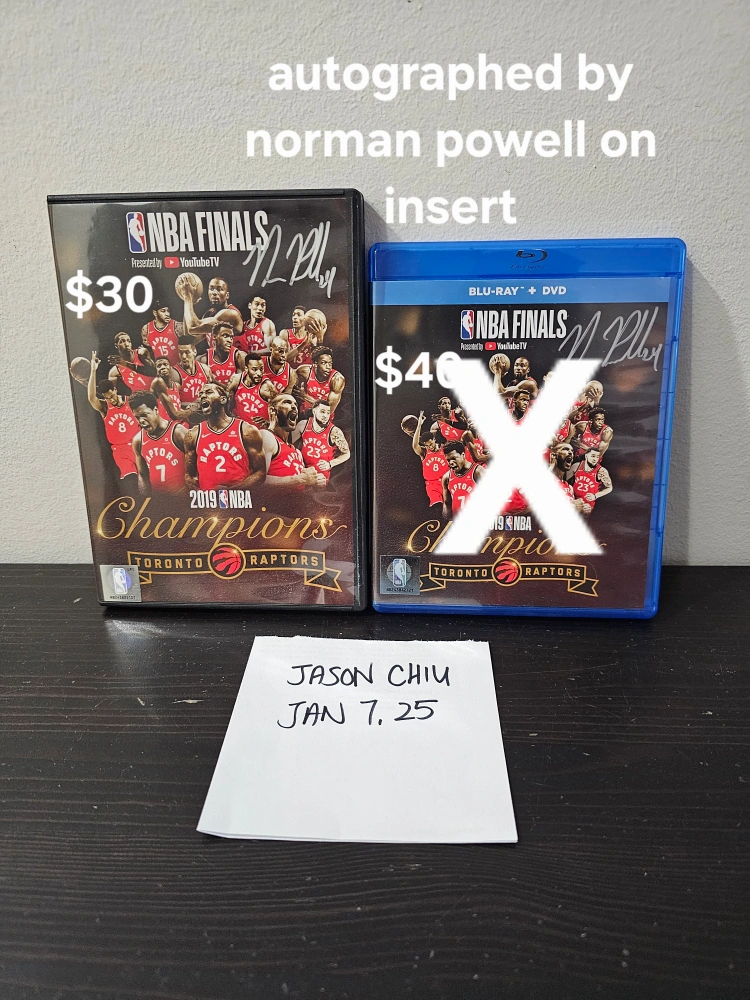 Autographed DVD of the 2019 NBA Finals featuring the Toronto Raptors. Autograph by Norman Powell on insert. Excellent condition, only opened to have autographed. Includes DVD, never played or taken out of box.