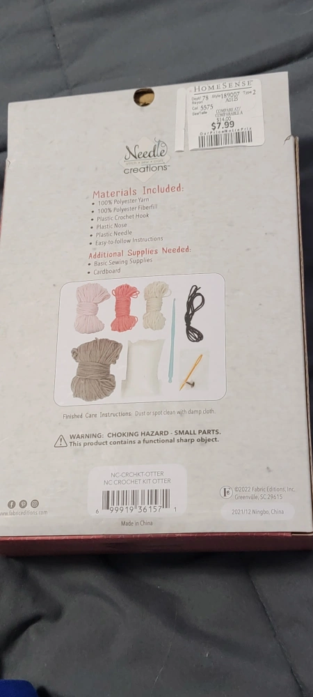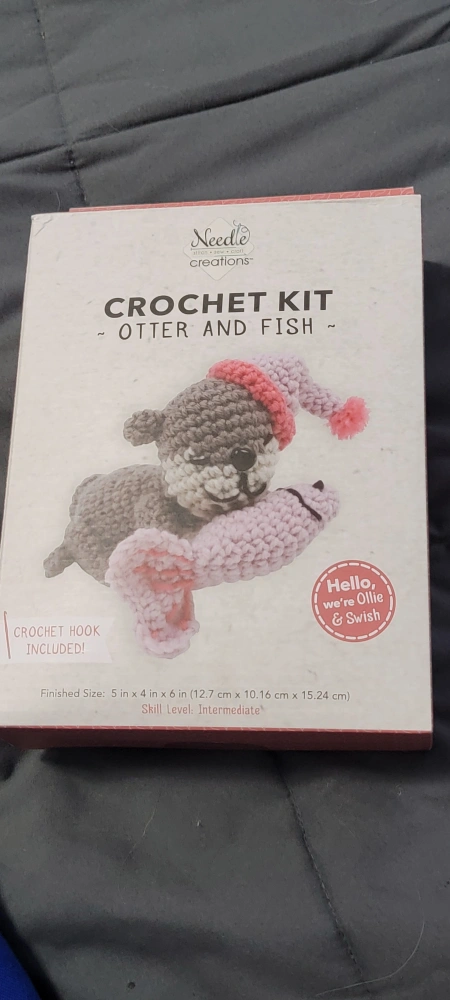 New crochet kit. Includes yarn, crochet hook, and instructions. Makes an otter and fish. Intermediate skill level. Finished size 5 x 4 x 6 inches. #freecycle