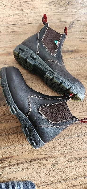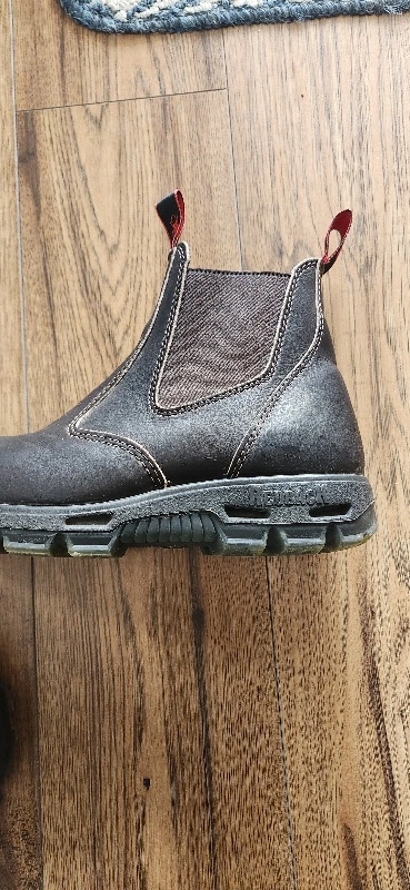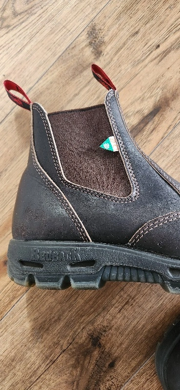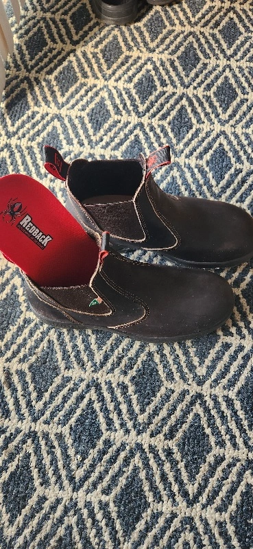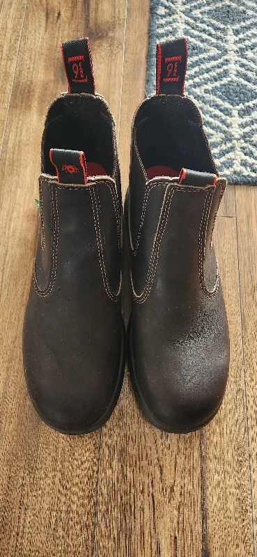 Australian Redback safety slip on boots. Company provides full Warranty. Dark Brown only worn several times. like new condition.