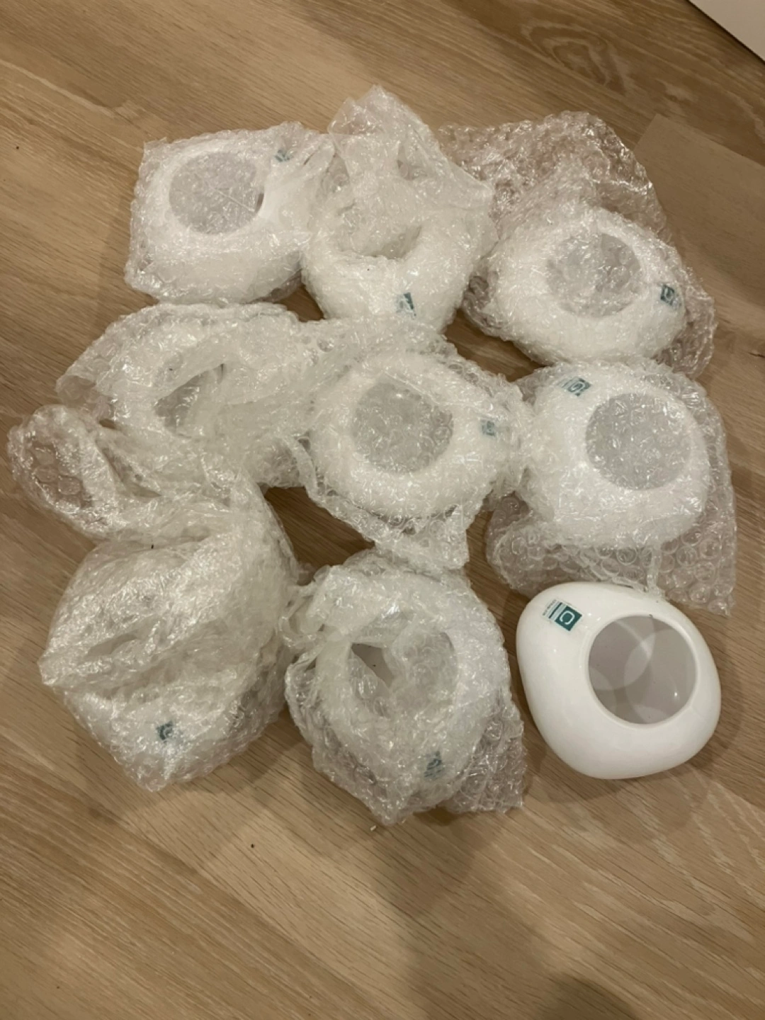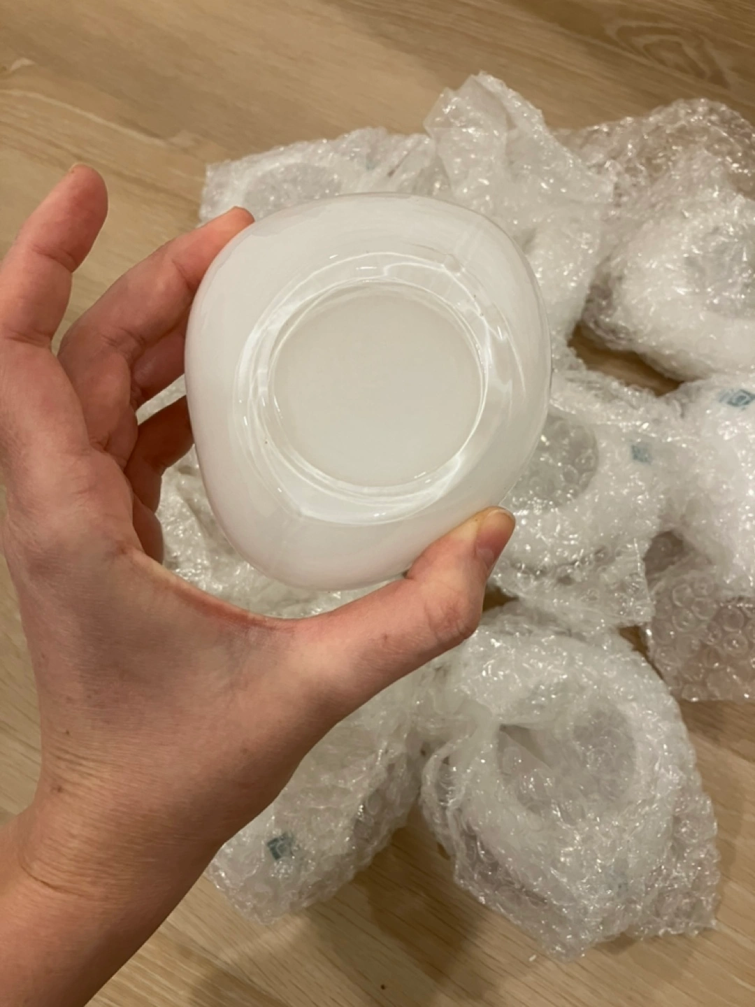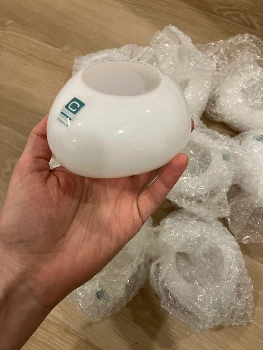 Set of 9 white glass vases (could also be used as candle holders). Unique, modern design.