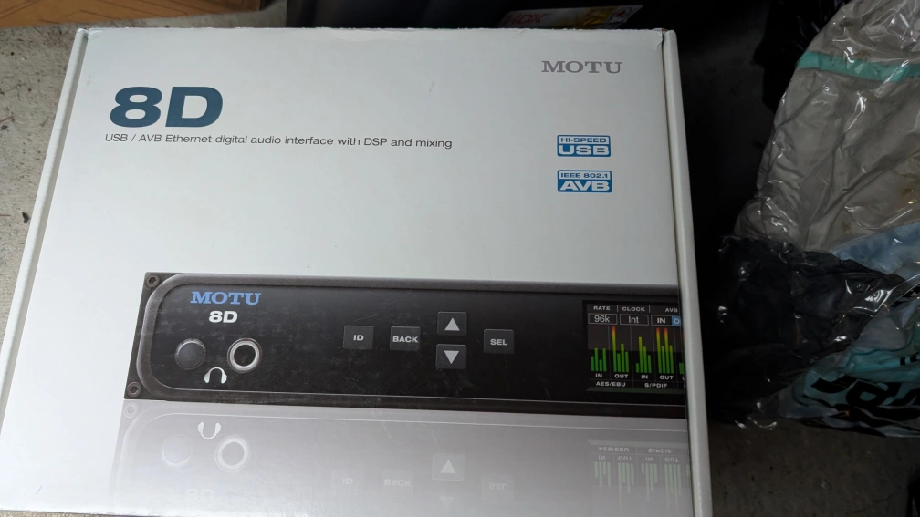 MOTU 8D digital audio interface. USB and AVB Ethernet connectivity. Features DSP and mixing capabilities. New in box.