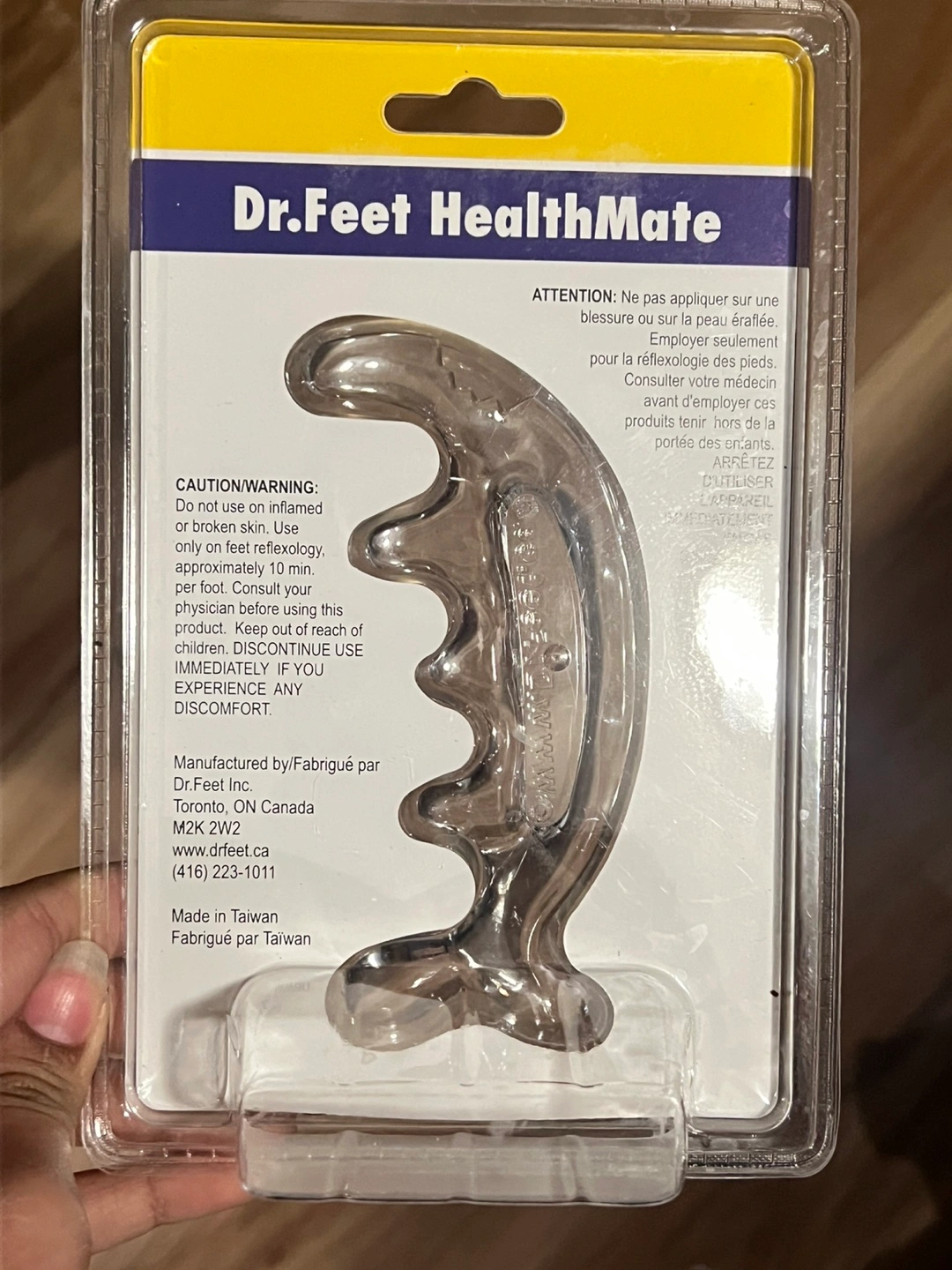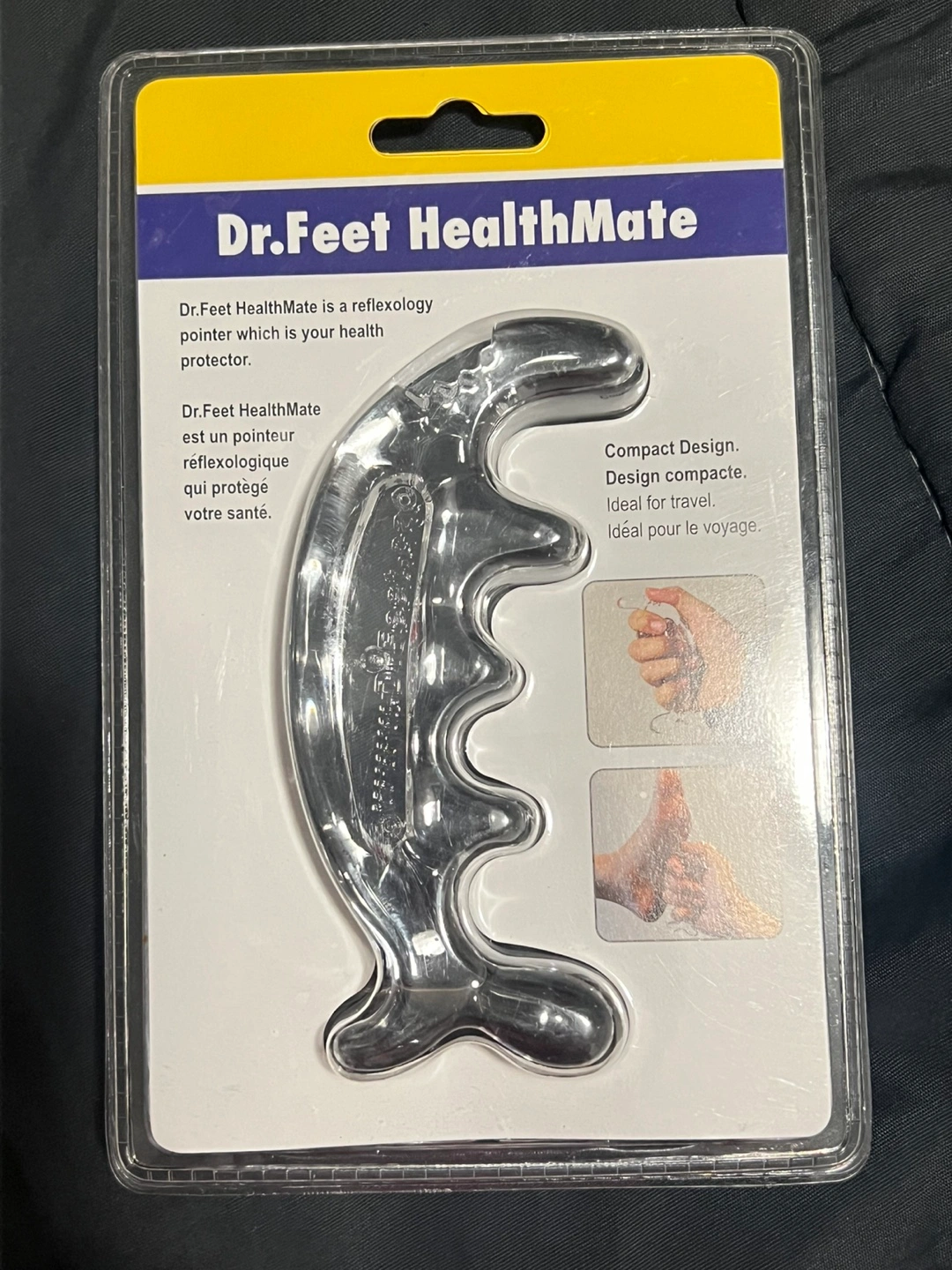 New in package. Compact design, ideal for travel. Reflexology foot pointer. Use on healthy skin only. Keep out of reach of children. Made in Taiwan.