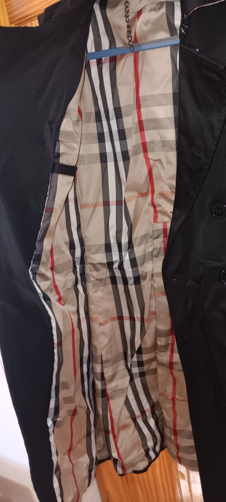 Classic Burberry trench coat. Double breasted. Black. Nova check lining. Size xl..