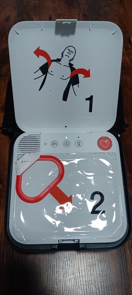 LIFEPAK CR2 Defibrillator in a hard case with shoulder strap. CrowdRx Medical branding. new condition.