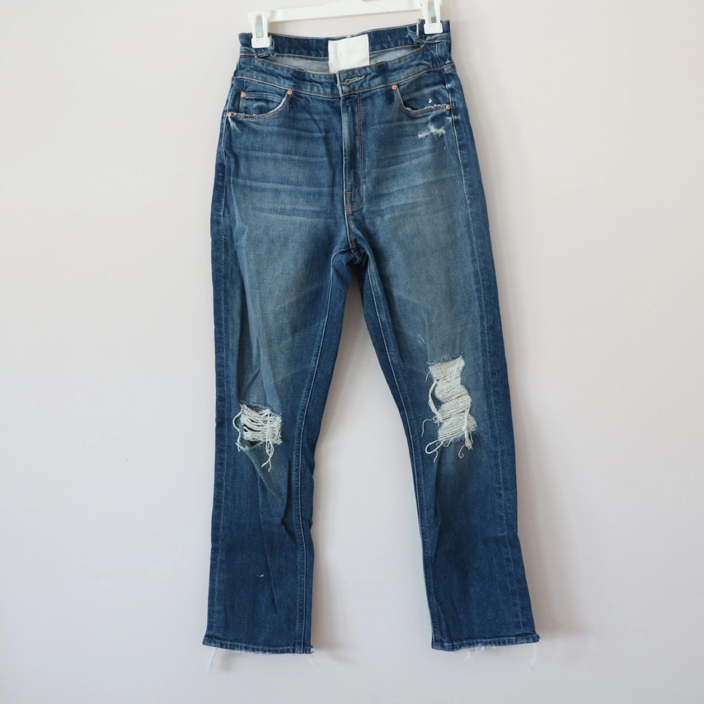 MOTHER The Dazzler Shift Crop Jeans, Size 27, Distressed Denim