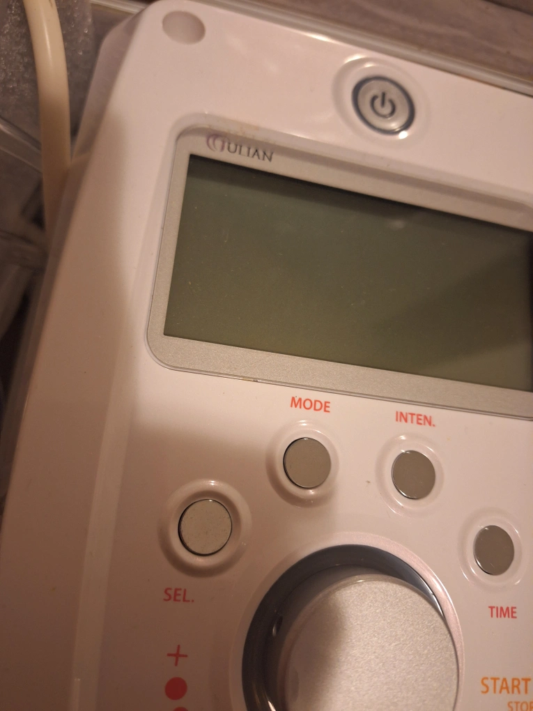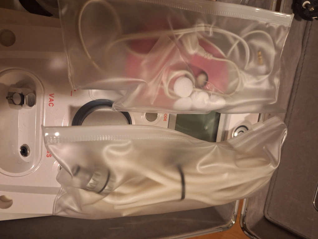 Portable Breast massage therapy machine. . Includes carrying case, various attachments, and accessories. Instruction missing. 220 Volts