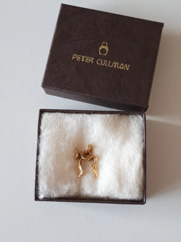 1000+One-of-a-kind solid 18 K gold chai in an organic style, made by an award-winning world-class goldsmith and designer. This eye-catching piece is hand made, not mass-produced by a cookie-cutter press. {See all 8 photos and read below for all the details} It is made of solid 18 karat gold in an organic shape that is one of a kind. Most surfaces are glossy, while a few recessed parts have been left less polished for textural contrast and to accentuate the organic feel of the piece. About the designer: Peter Cullman is an award-winning, world-class goldsmith and designer who was born in Berlin, where he apprenticed and studied. He has worked in Los Angeles, Montreal (where he was head designer for a major jeweler), Johannesburg (where he had his own studio) and Toronto (where he had own studio and store in the posh Yorkville district from 1979-2003). He has participated in international jewelry exhibitions and won numerous awards including overall first prizes. This is a vintage piece that was made in the late 1980s. It was purchased directly from the designer in his studio in 1989. It is stamped CULLMAN on the back and 18K on the ring loop. It comes in its original Peter Cullman box. • Solid 18K gold. • Weight: 1.94 g Dimensions: • 18 mm high (to top of ring) • 14 mm wide • 3 mm thick (at thickest parts) Makes a perfect necklace for men and women, and a wonderful gift to mark a Bar or Bat Mitzvah, or any other occasion. 👉 Pick up from Yonge & St Clair 👉 See my other jewelry posts too!
