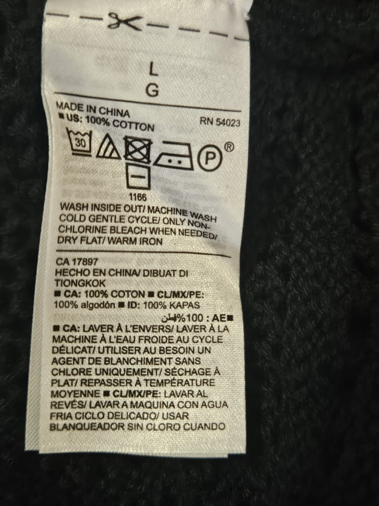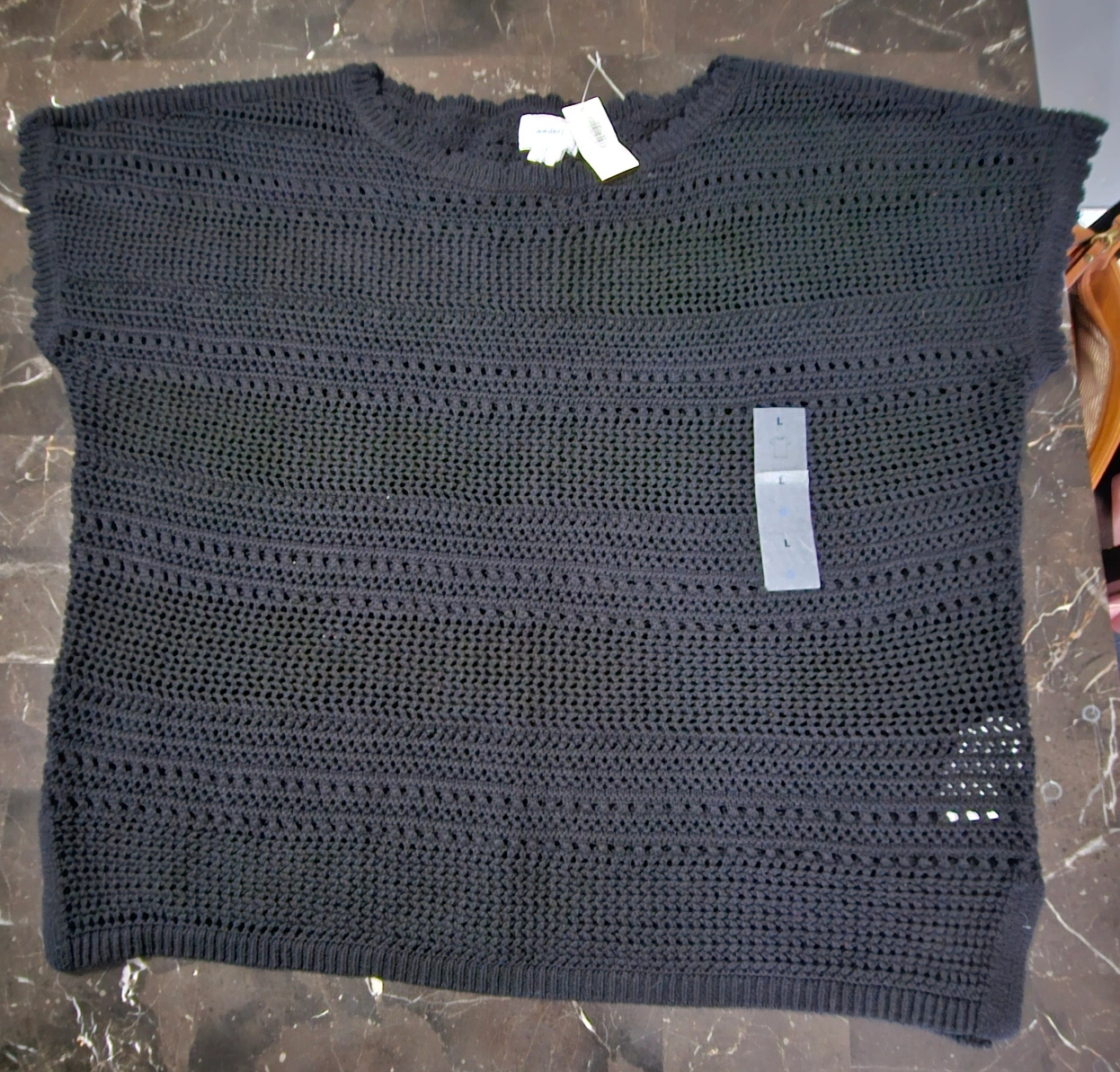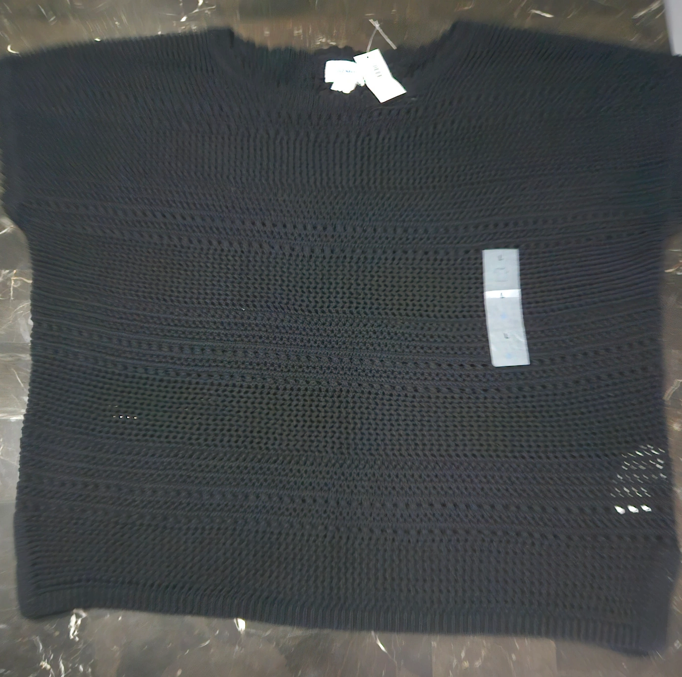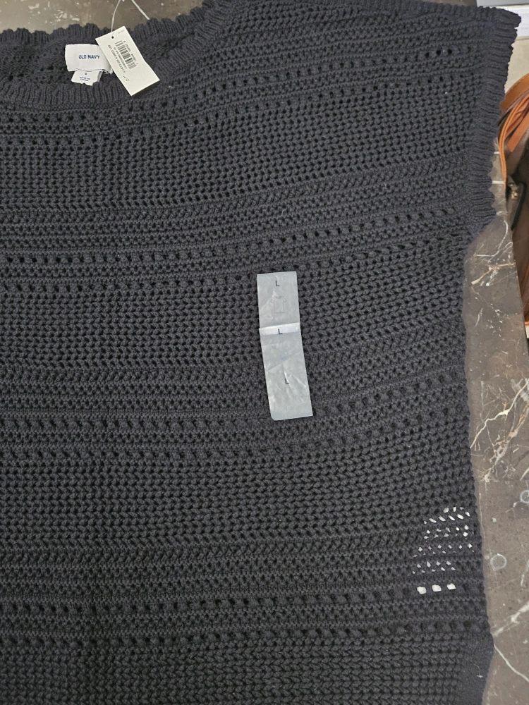 Women's black knit short sleeve sweater. Size large. 100% cotton. Made in China. Machine washable. New, tags still on.
