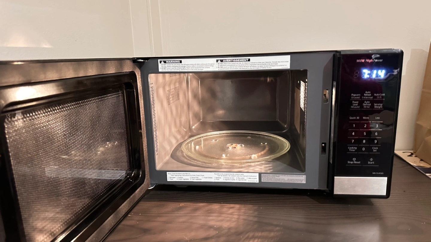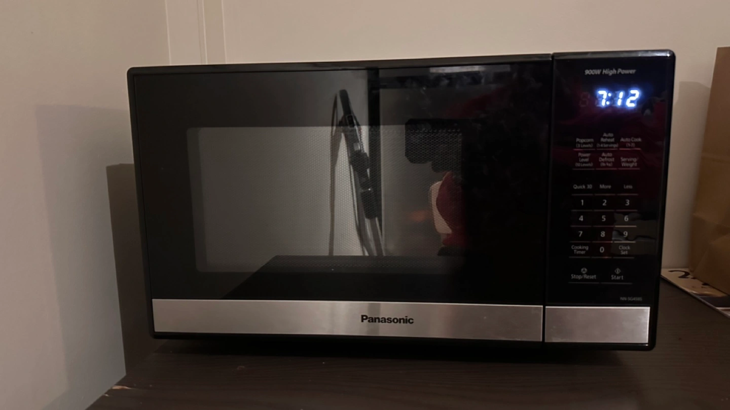 Black microwave. 900W high power. Various cooking options. Digital display. Great condition. Few months old. Selling because I am relocating