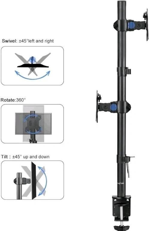 84Suptek Dual LED LCD Monitor Stand up Desk Mount for 2 / Two Screens up to 27 inch Extra Tall 31.5" Pole Heavy Duty Fully Adjustable Stand Vertical Array (MD6802) Package Dimensions: 42x15x10cm 20002919 S-4 5