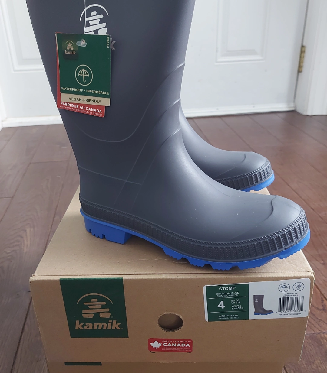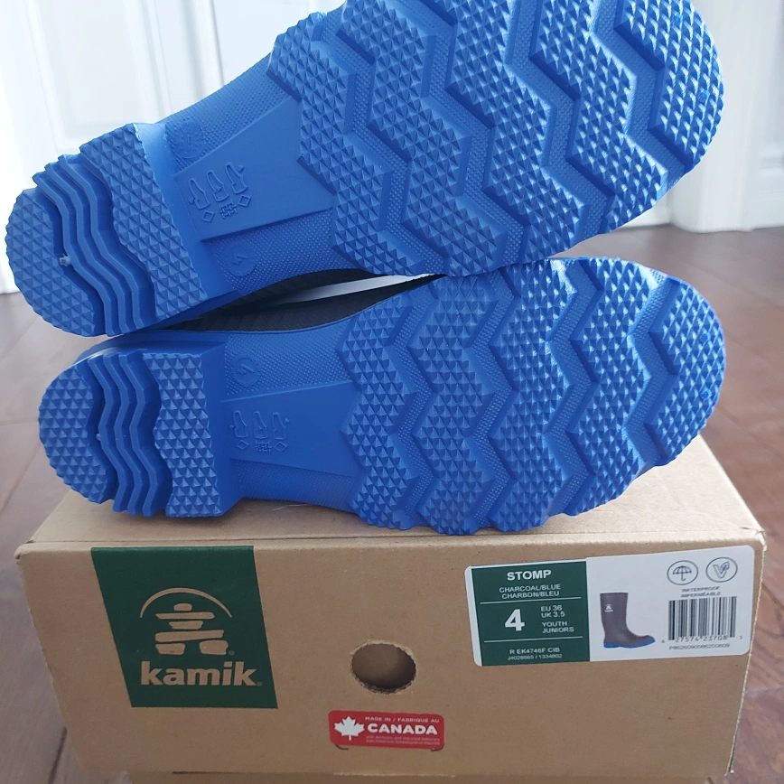 Brand new Kamik STOMP rain boots. Size 4. -Smoke and pet free home. -Potential to meet at Kipling station at certain times