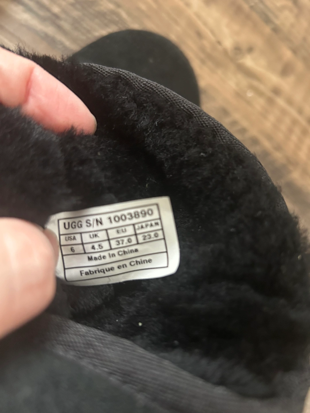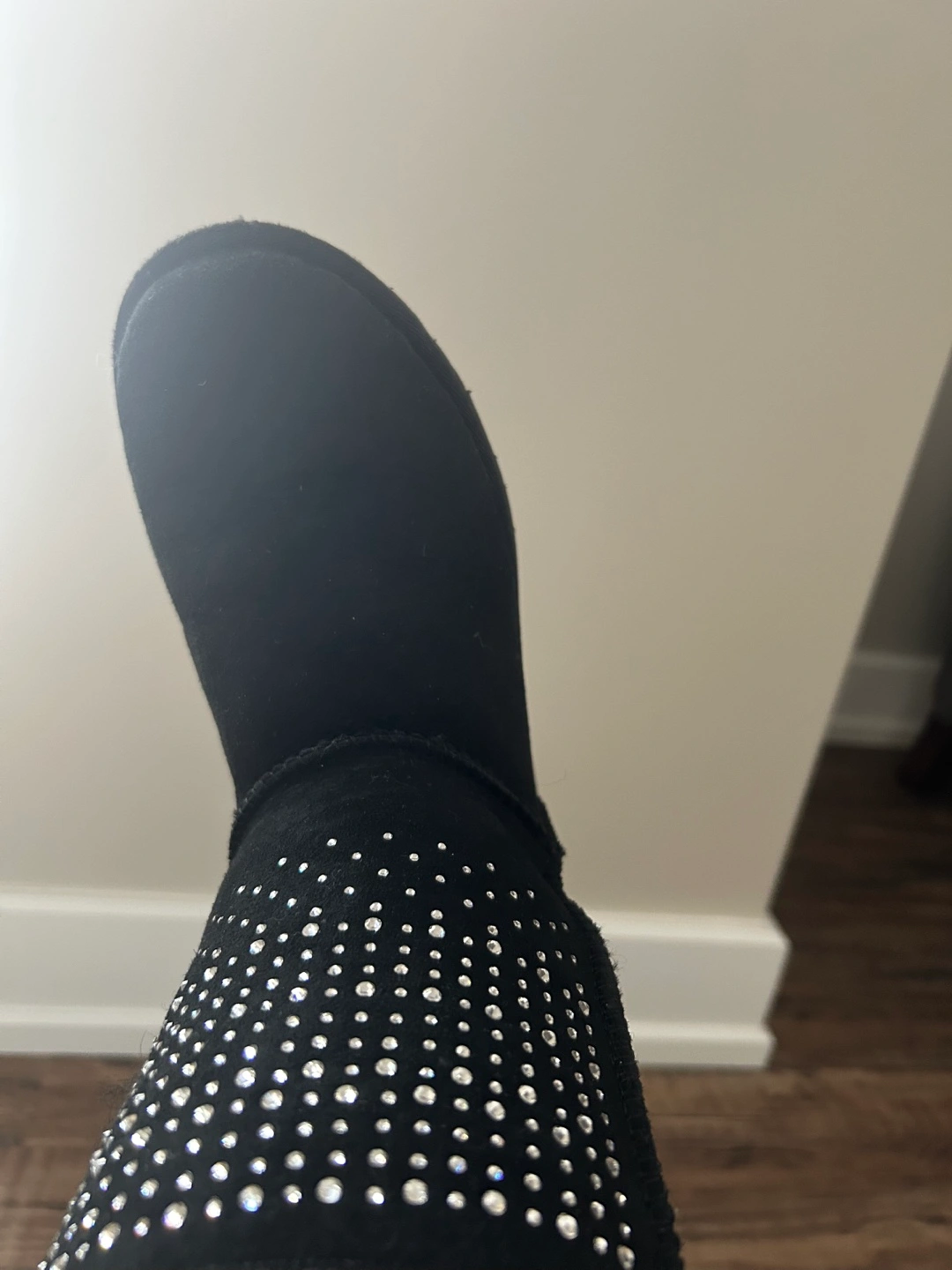 Black suede UGG mini boots.