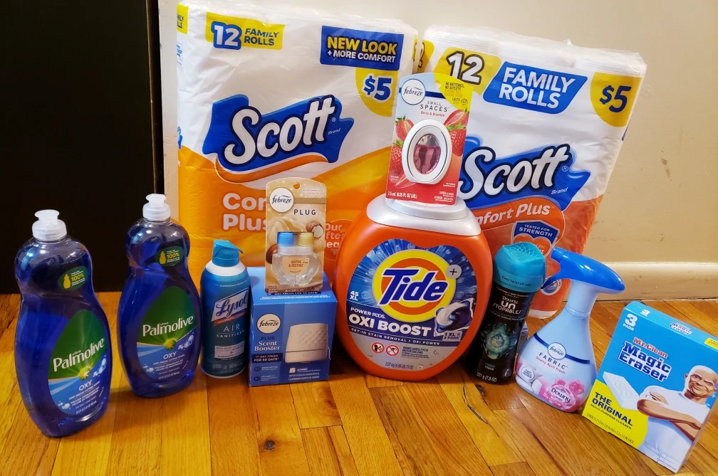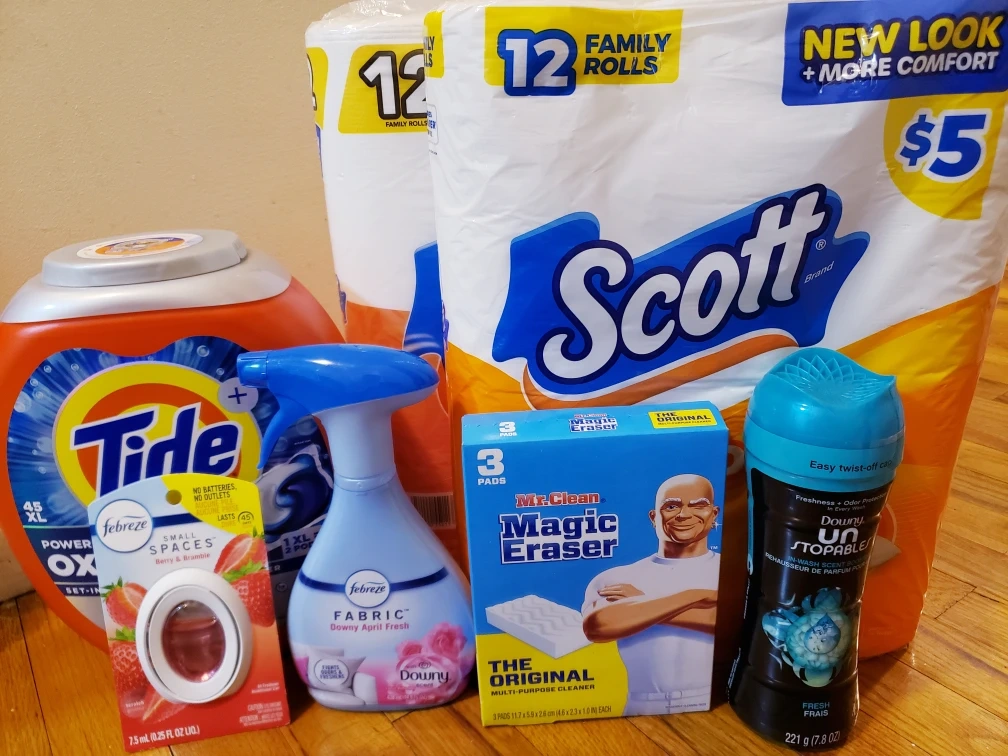 Bronx pickup. Morris ave area . Price is firm. No substitutions.Check out other listings. $55 for all 12 items Large bundle of cleaning and home fragrance products. Includes Tide Oxi Boost Power Pods, Palmolive dish soap, Febreze Fabric Refresher, Febreze Plug scent booster, Mr. Clean Magic Eraser, and Scott Comfort Plus toilet paper. Small space. Great for stocking up on household essentials!