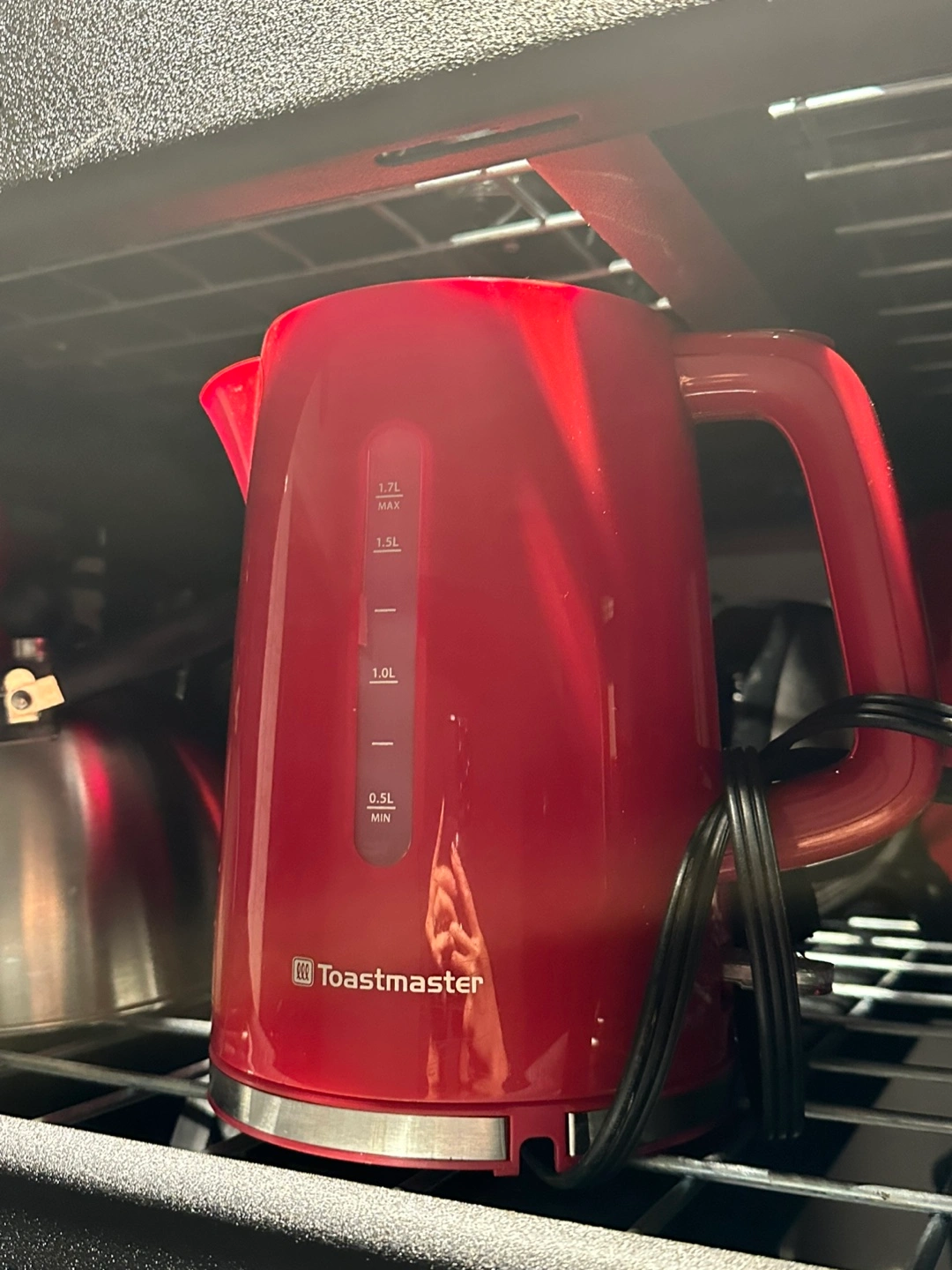 123Red electric kettle. Cord included. Holds up to 1.7L. Good used condition.