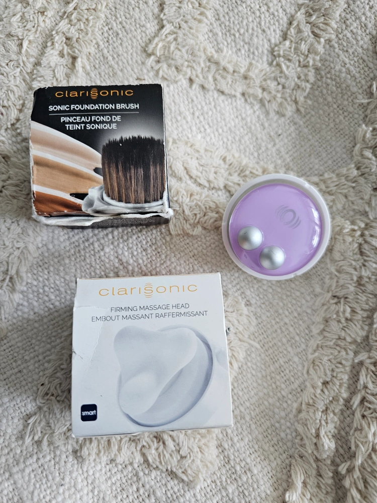 272Three Clarisonic attachments. One is a sonic foundation brush, the other a firming massage head. Both are new and unopened. $30 each
