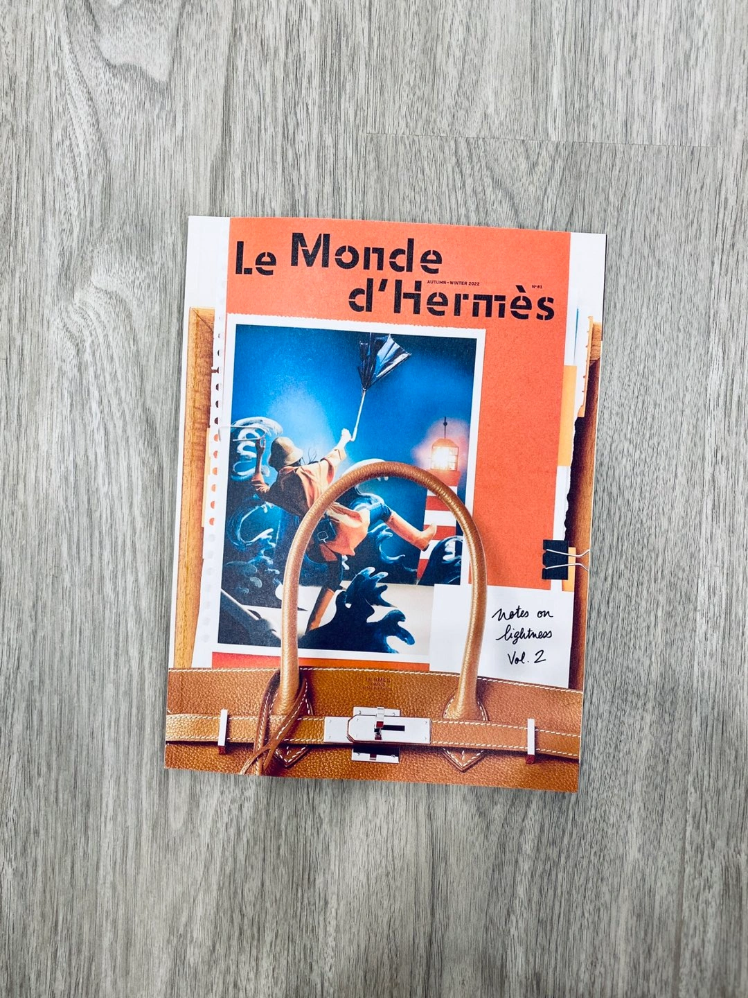 100% brand new Authentic Le Monde D'Hermes No. 81 Autumn Winter 2022 Catalog Magazine with orange Fishnet Bag. Pictures are taken by myself. The magazine is in English and around A4 size. Comes with orange fishnet bag from Hermes store which is Christmas exclusive. True Collector item! Pick up at Bloor and Jarvis. I could do shipping if you pay by PayPal or interac.