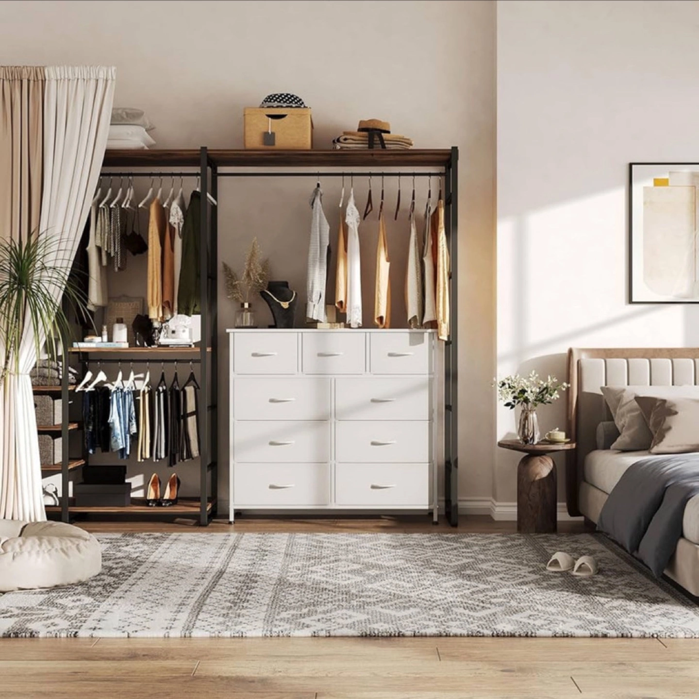 MUTUN Multifunction Tower: By storing the sundries reasonably and orderly you can have a clean and comfortable environment. This commode de chambre is great for bedrooms closets nurseries living rooms hallways dorms and entryways. DISPLAY & DE-CLUTTER: The foldable deep drawers are spacious enough to hold your clothes bed sheets towels books toys and other household. It can provide endless organizational possibilities. Wooden tops can place things you want to display or keep in reach such as framed photos lamps and potted plants. Stable Construction: The tall 4-Tier drawers are made of sturdy metal frame and durable wooden waterproof tabletop. The 9 removable drawers with easy-to-pull wooden handles. The strong steel frame enhances product stability and load capacity. 4 adjustable feet protect the floor from scratches and fit for uneven floors. Overall Dimension: The wide chest of drawers measures 39.4" L x 11.8" W x 38.9" H. Drawer Size: 12.1" L x 11" W x 8.7" H x 3 and 18.4" L x 11" W x 8.7" H x 6. The bedroom dresser can also be TV stand for small-size TV. EXCELLENT SERVICE: Detailed installation instructions and required tools are included in the package. Even a novice can complete the installation. Please contact us if you have any questions.