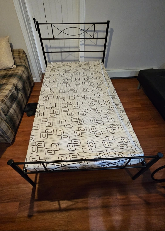 Giving away -Twin mattress and metal bed frame. Pick up only.