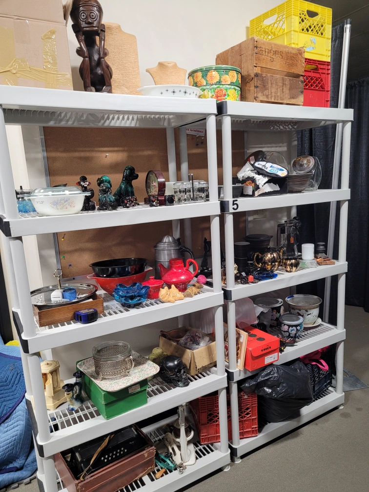 Assortment of vintage and collectible items. Includes glassware, pottery, kitchenware, figurines, and more. Various brands and styles represented. Some items appear to be mid-century modern. Perfect for collectors or enthusiasts. Must pickup. Please. no etransfer or long holds. this is a cash price. bring cash. This is in storage and I will meet you there. I can access the building during 8 to 430 Monday to Friday. No one is there outside of those times.