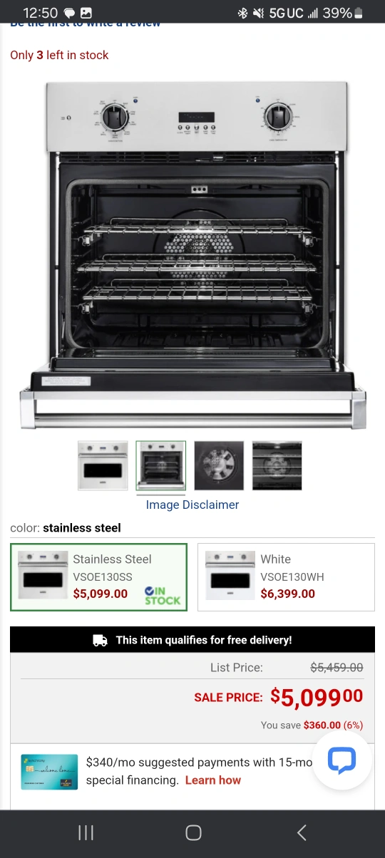 Viking VSOE130SS 30" 4.7 cu. ft. Stainless