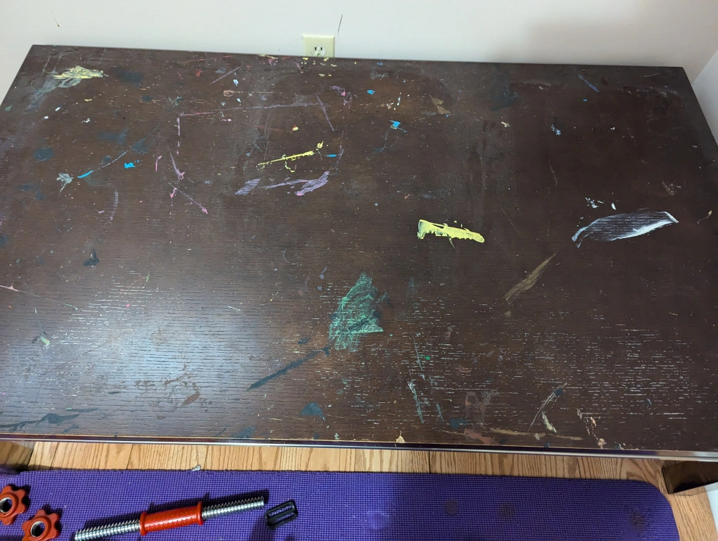 the table itself is in good condition but it has paint on the top. can be easily stripped, sanded and refinished
