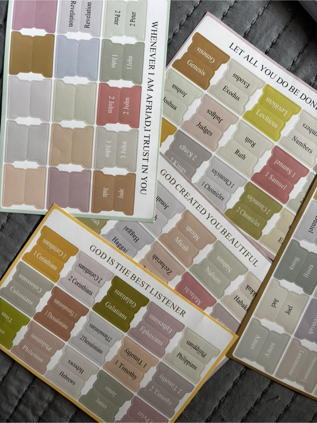 It consists of two parts, with the first part being a notepad composed of the standard record format of the Bible content for each study. The second part is a coloured Bible card, formed by selecting corresponding chapters from the Bible according to different themes and classifying different themes by different colours. You can use the first part directly for your Bible study according to your habits.