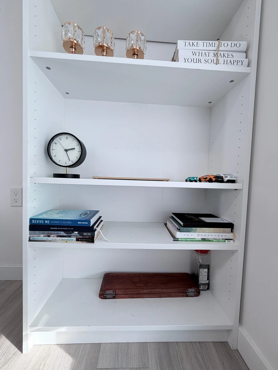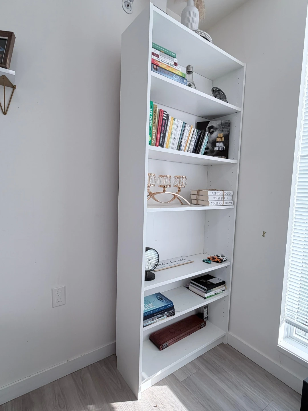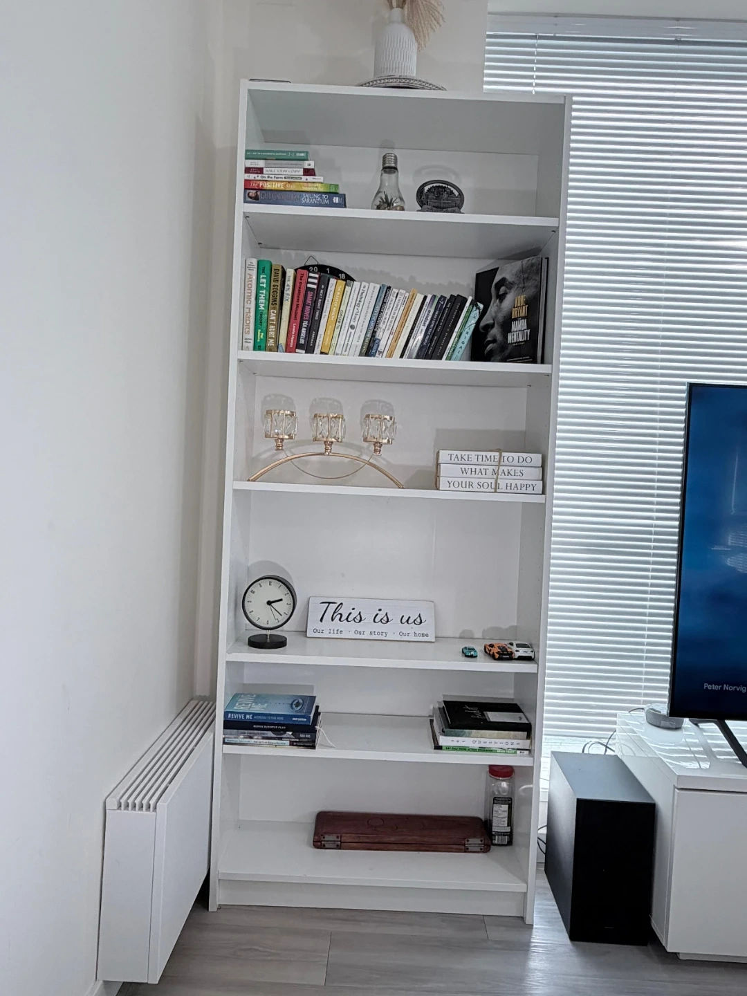 A tall white Billy bookcase, perfect for organizing your books and decor. This unit provides ample shelving space for any room!