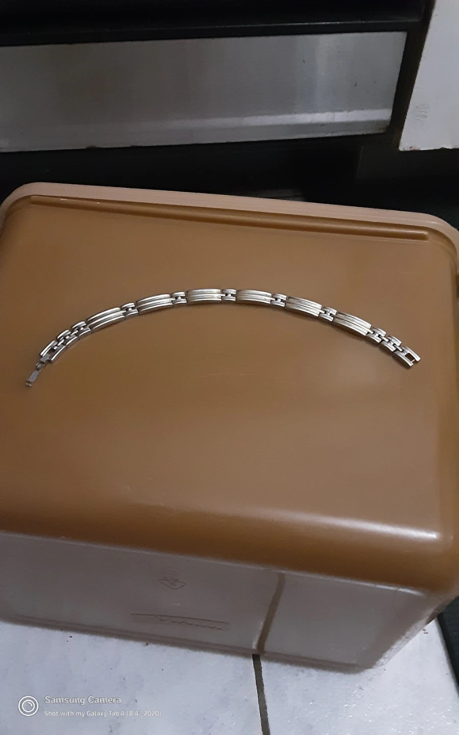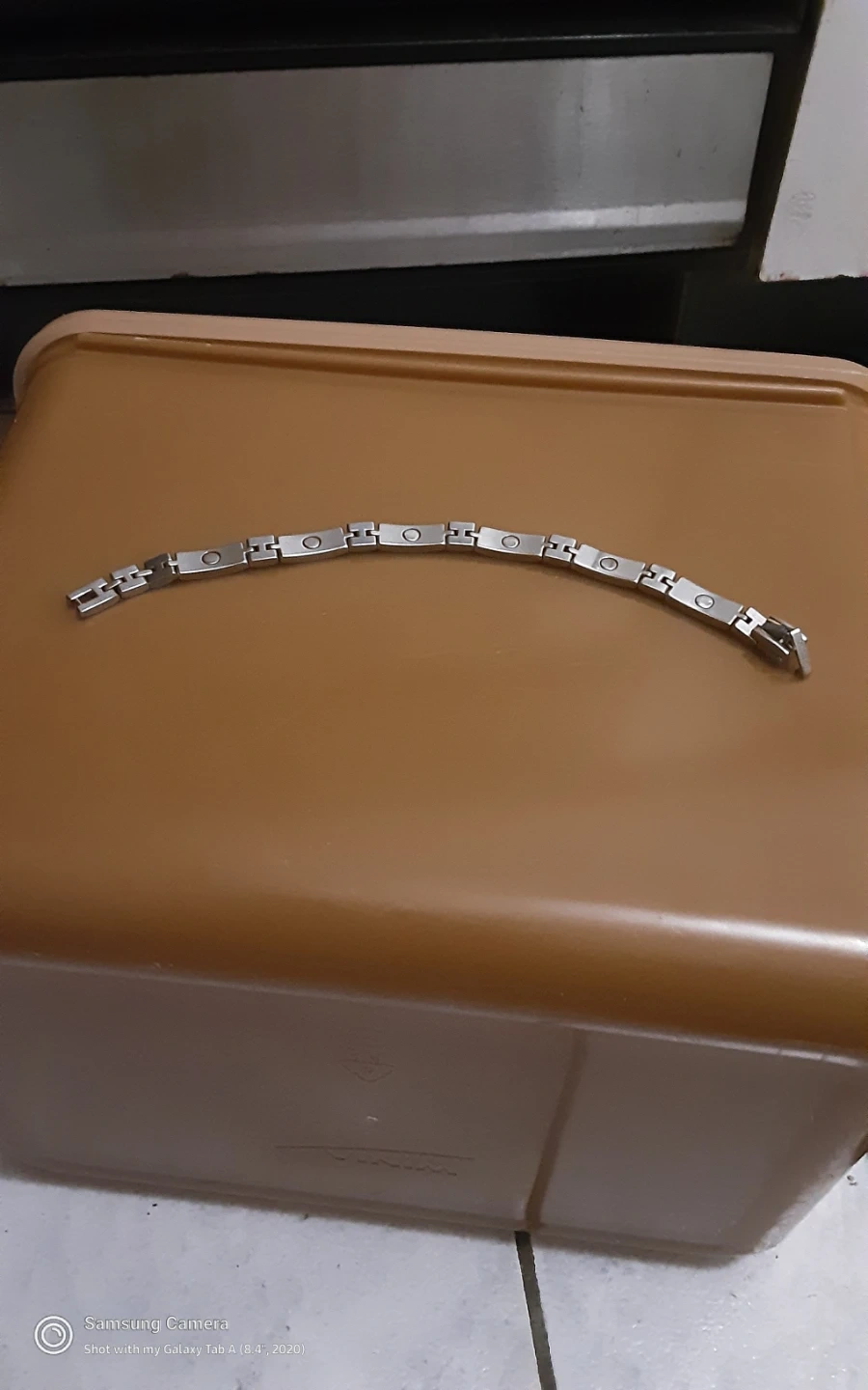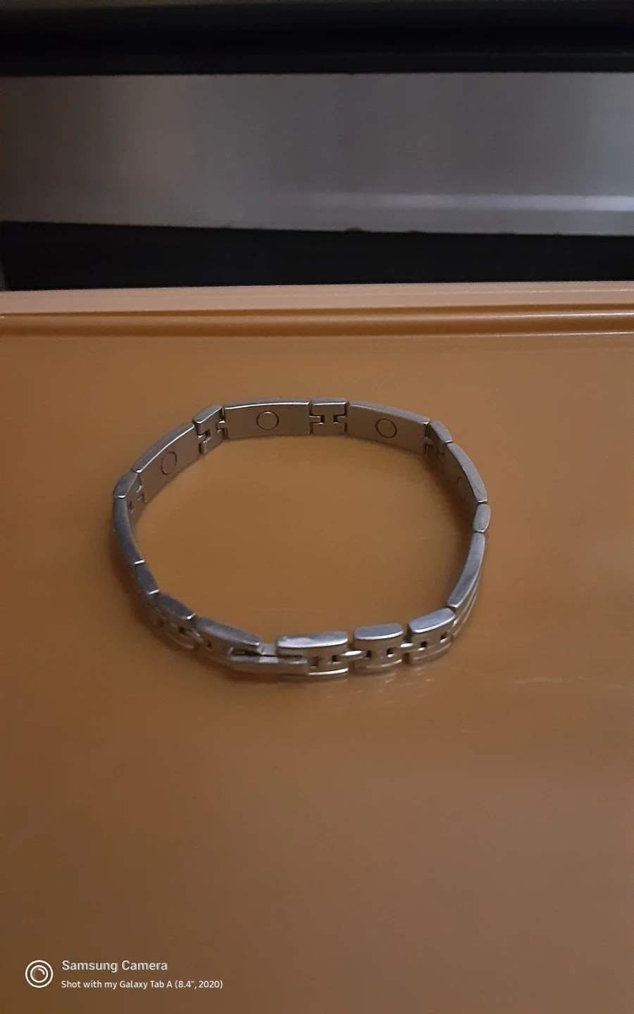 This Sabona bracelet is crafted from durable stainless steel gold plated . It features a classic link design. This bracelet is suitable for anyone looking for a stylish accessory.