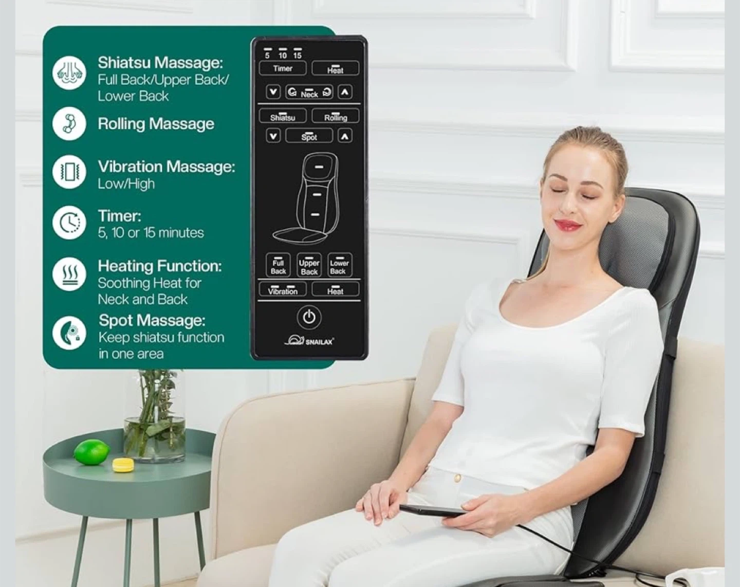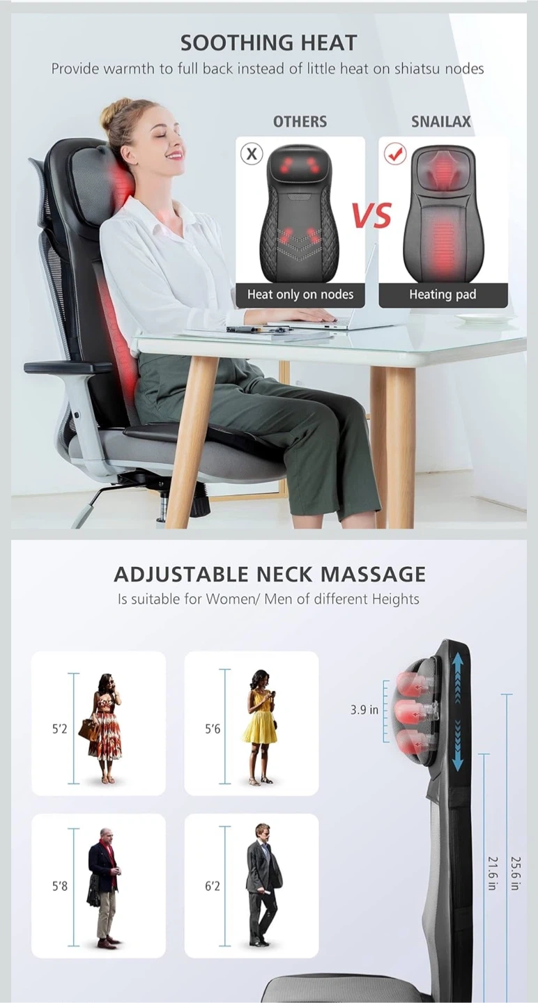 SNAILAX Shiatsu Massage Seat Cushion