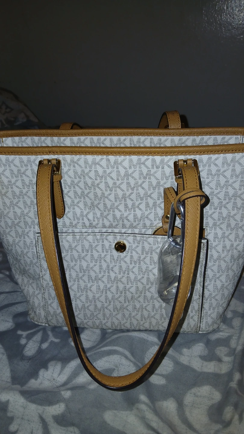 Used Vanilla cream Michael's kors tote bag .like new accidentally got stain in the back but I believe stain is removable with baking soda. Selling cheap because of it.