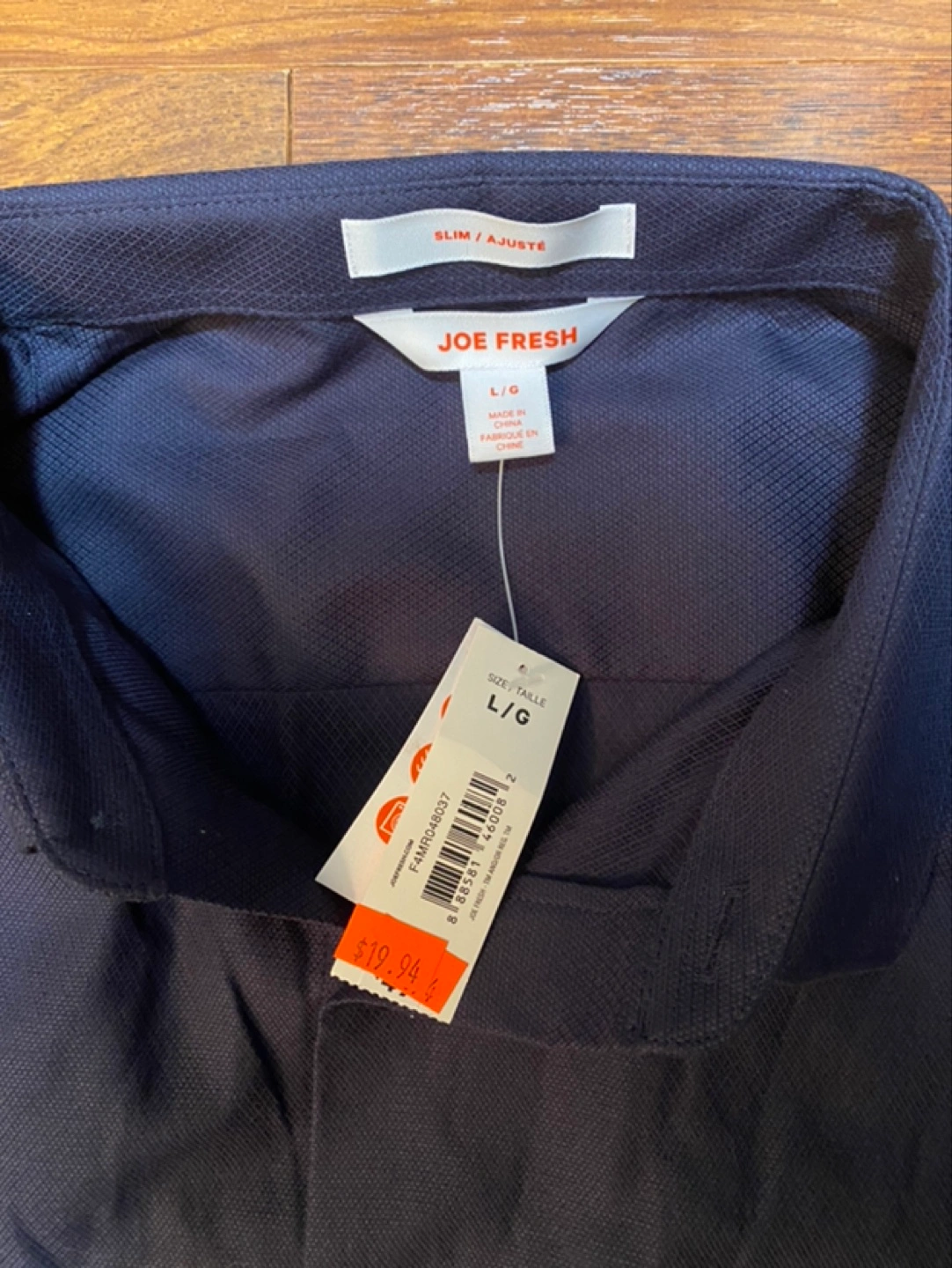 Men's navy blue long sleeve dress shirt. Size large. New with tags. PICK UP PICKERING WHITES RD & STROUDS LANE
