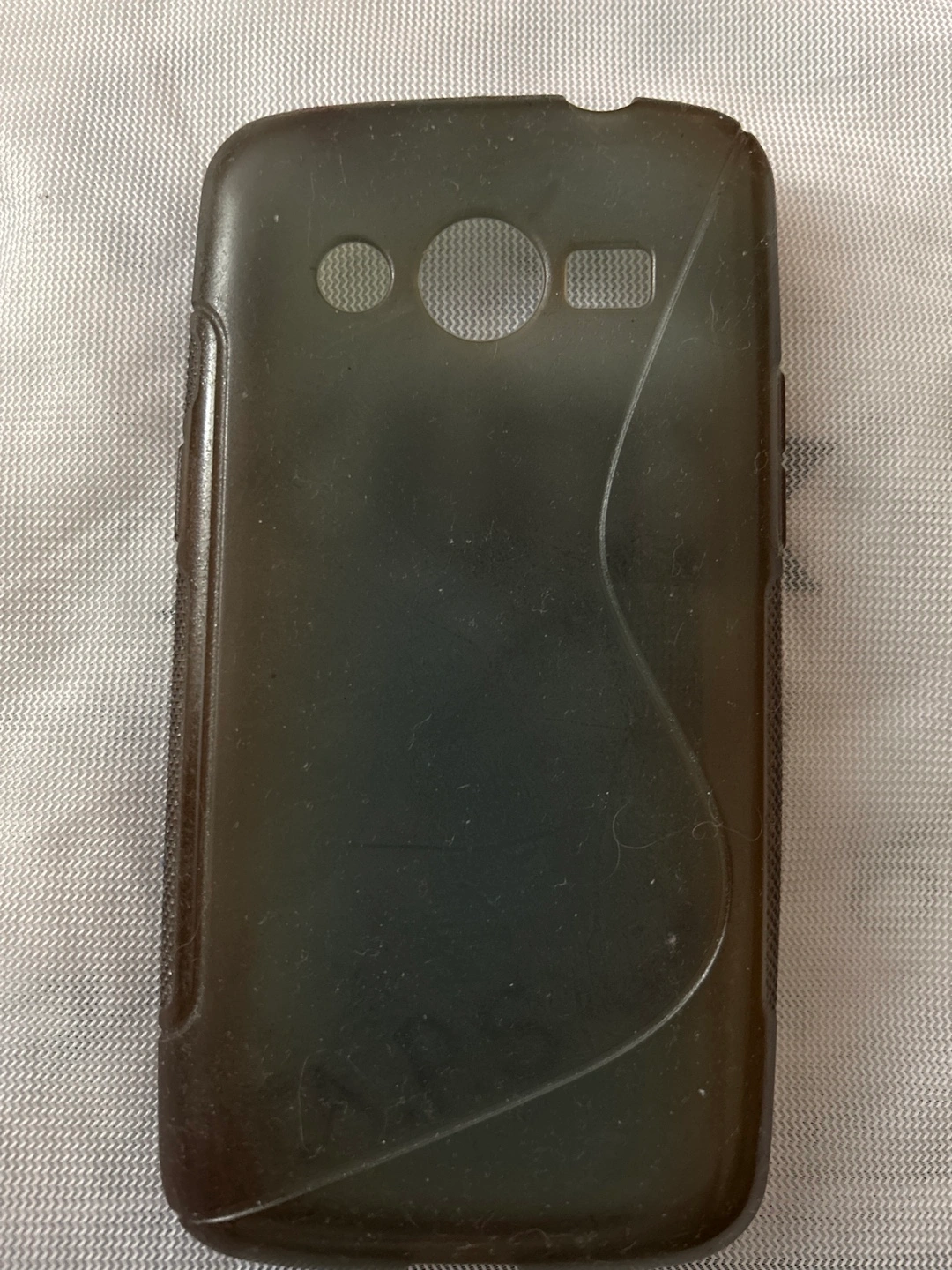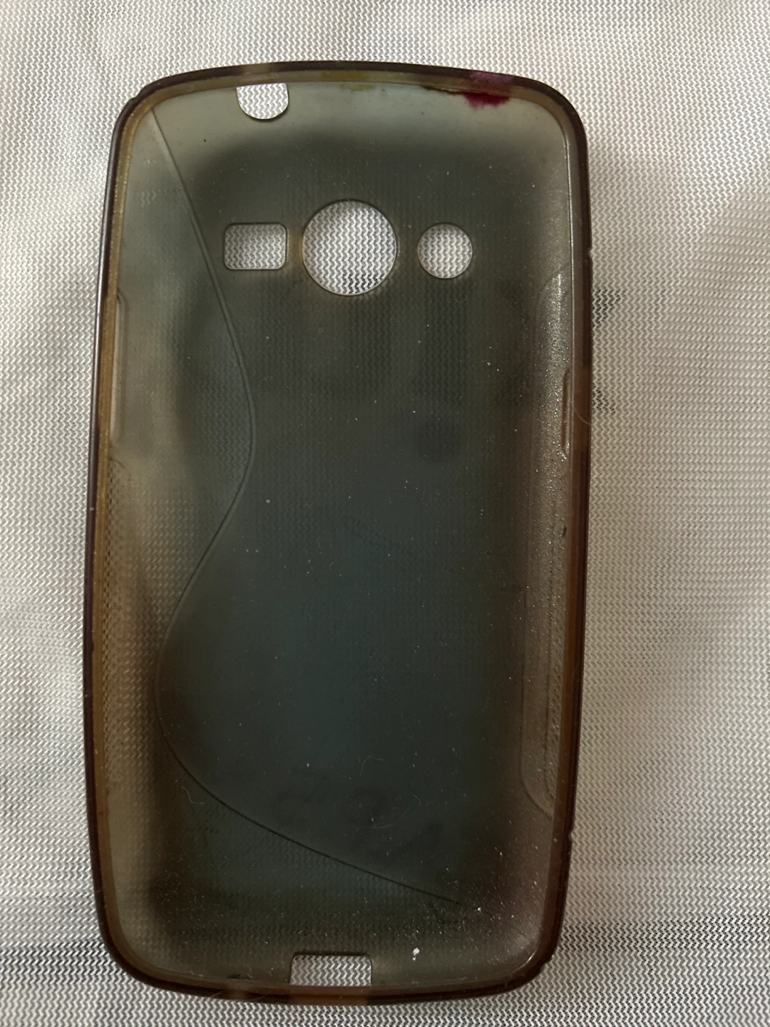 Used phone case. Clear, slightly smoky colour. Soft, flexible material. Compatible with Samsung Galaxy S III Mini.