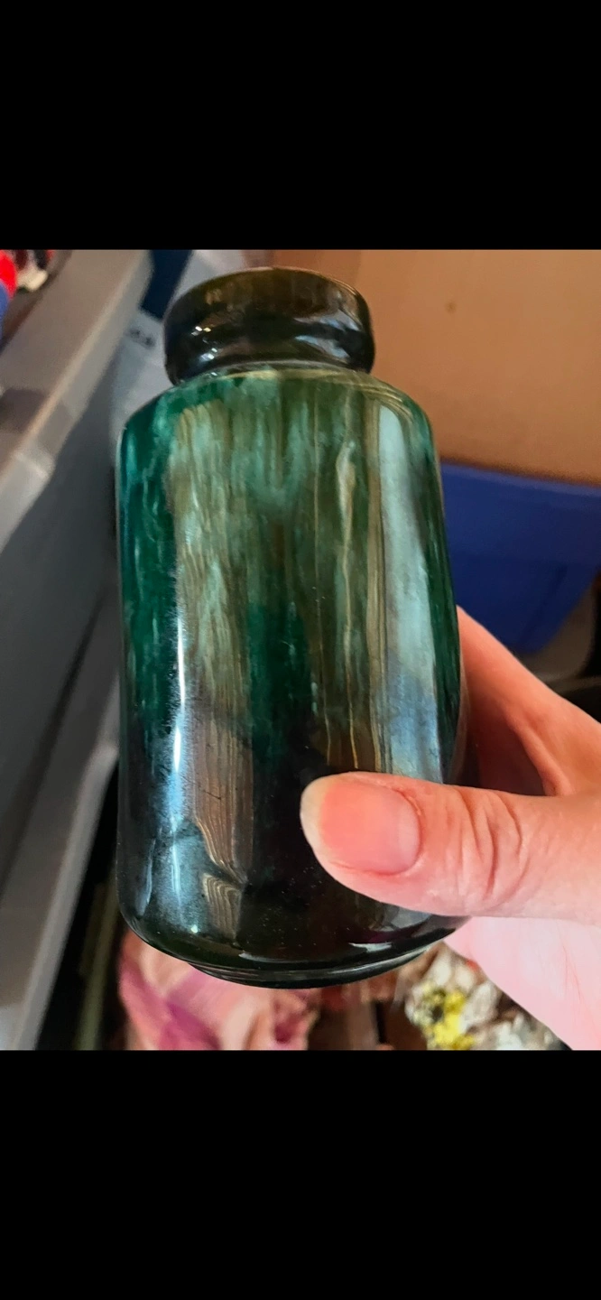 Unique green glazed ceramic vase. Made in Canada. , perfect for a shelf or small arrangement. I believe it’s blue mountain pottery. Pick up is south Edmonton.